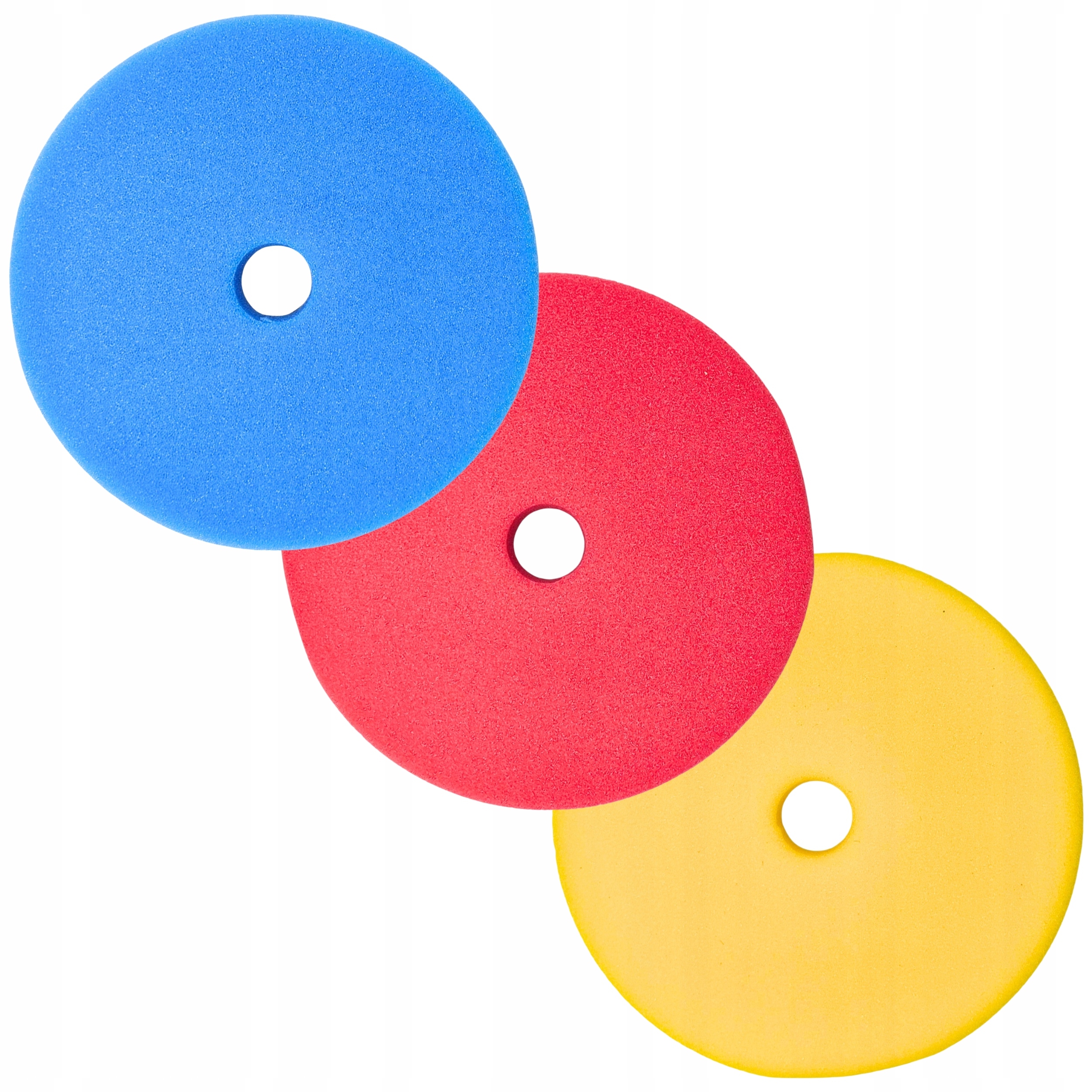Полный набор полировальных подушечек для 3-этапной коррекции лакокрасочного покрытия.
