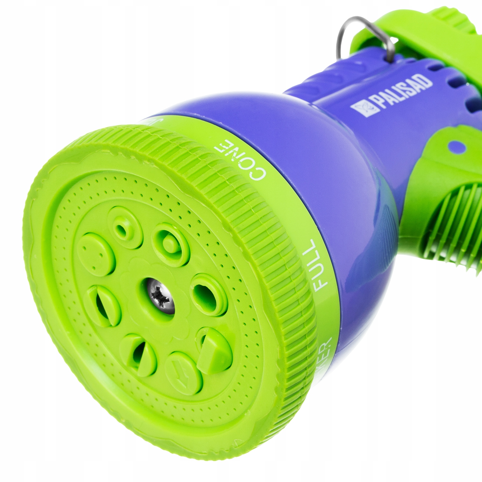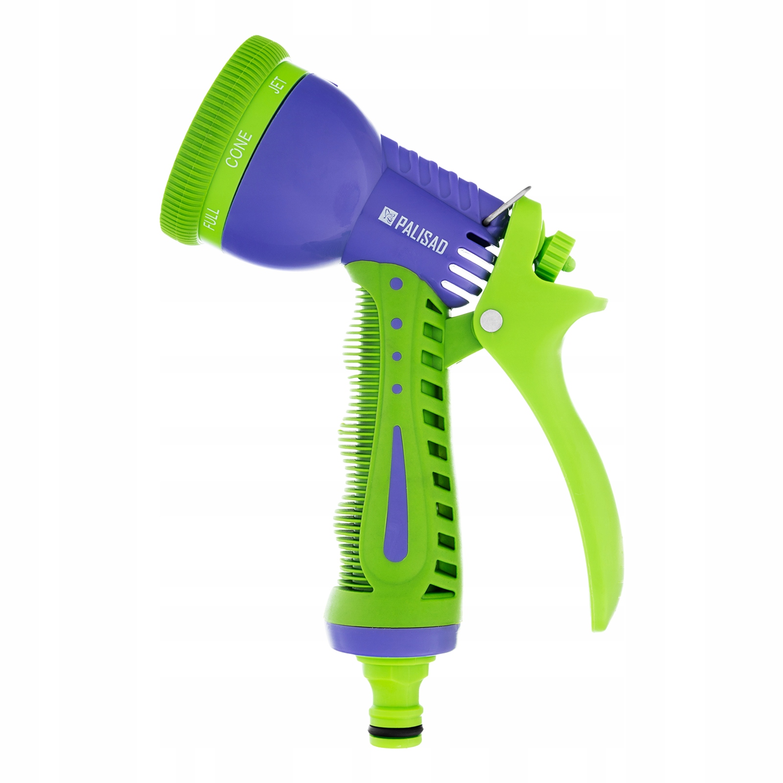 - Распылитель, материал: прочный АБС-пластик. Благодаря регулируемой головке он имеет шесть режимов орошения: душ, туман, коническая струя, центральная струя, плоско-горизонтальная струя, жесткая струя, что позволяет выбрать наиболее подходящий для режим. любого типа посадок , а также для уборки. Имеет фиксатор курка для непрерывной работы.