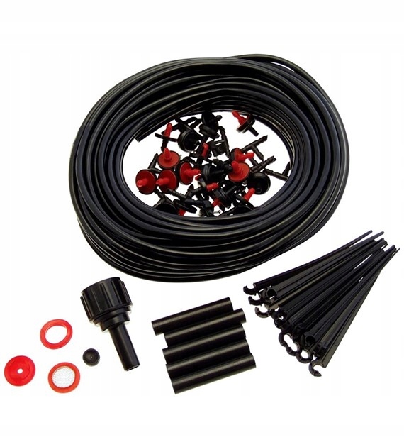 Набор состоит из 71 элемента, который идеально подойдет для использования как над землей, так и под землей. Благодаря этому набору вы сможете наслаждаться равномерным и экономным распределением воды даже в труднодоступных местах, таких как тоннели, клумбы или подвесные цветочные горшки.