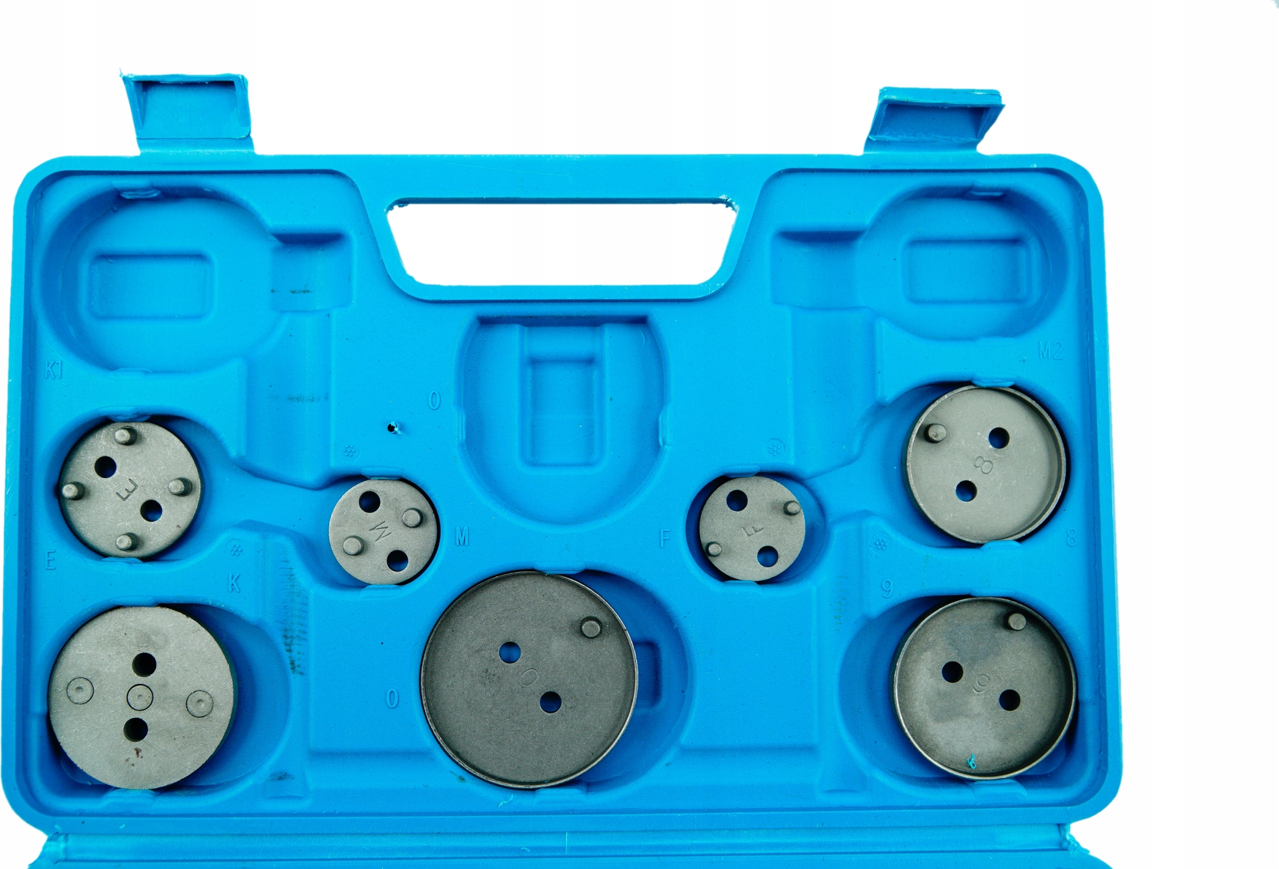 Профессиональный набор из 18 шт. для реверс/сжимание/прессование поршней в цилиндрах тормозной системы, необходимые при ремонте автомобилей, оснащенных дисковыми тормозами. Устройство состоит из двух винтовых прессов – правостороннего и левостороннего действия и набора пластин, позволяющих производить замену поршней в широком диапазоне автомобилей. Ручка оснащена магнитным наконечником, благодаря которому удерживает на оси пластину, соответствующую данному поршню. Набор предназначен для каждой автомастерской, где он помогает ускорить обслуживание тормозных систем. Набор подходит для большинства автомобилей на рынке: Audi, Fiat, Ford, Isuzu, Honda, Jaguar, BMW, Mercedes Benz, Mitsubishi, Nissan, Toyota, Renault, Volvo, Citroen, Opel, SAAB, GM и VW.