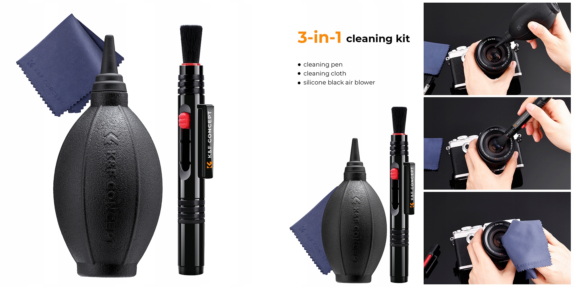 Набор для чистки K&F Concept 3in1 груша, микрофибра, фоторучка