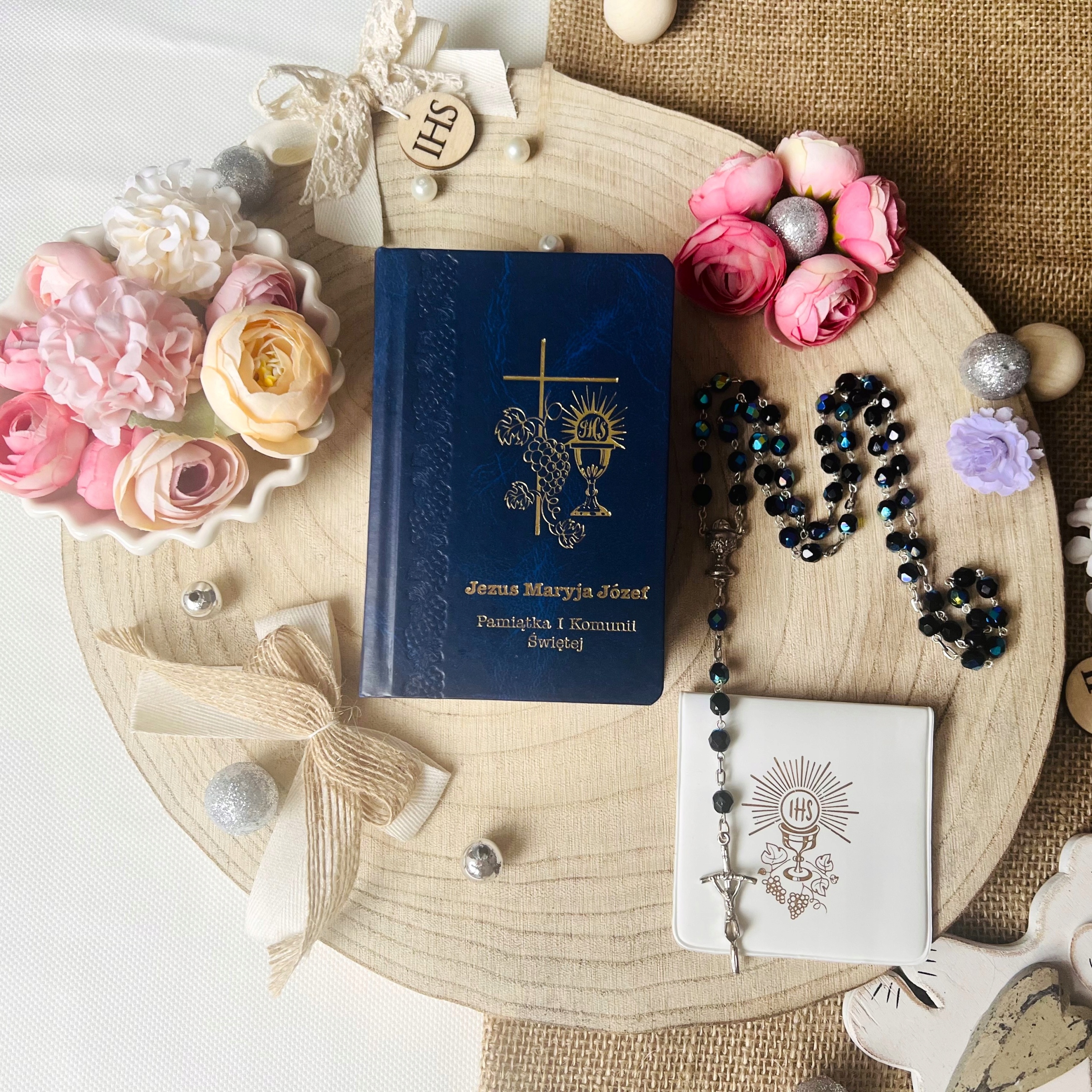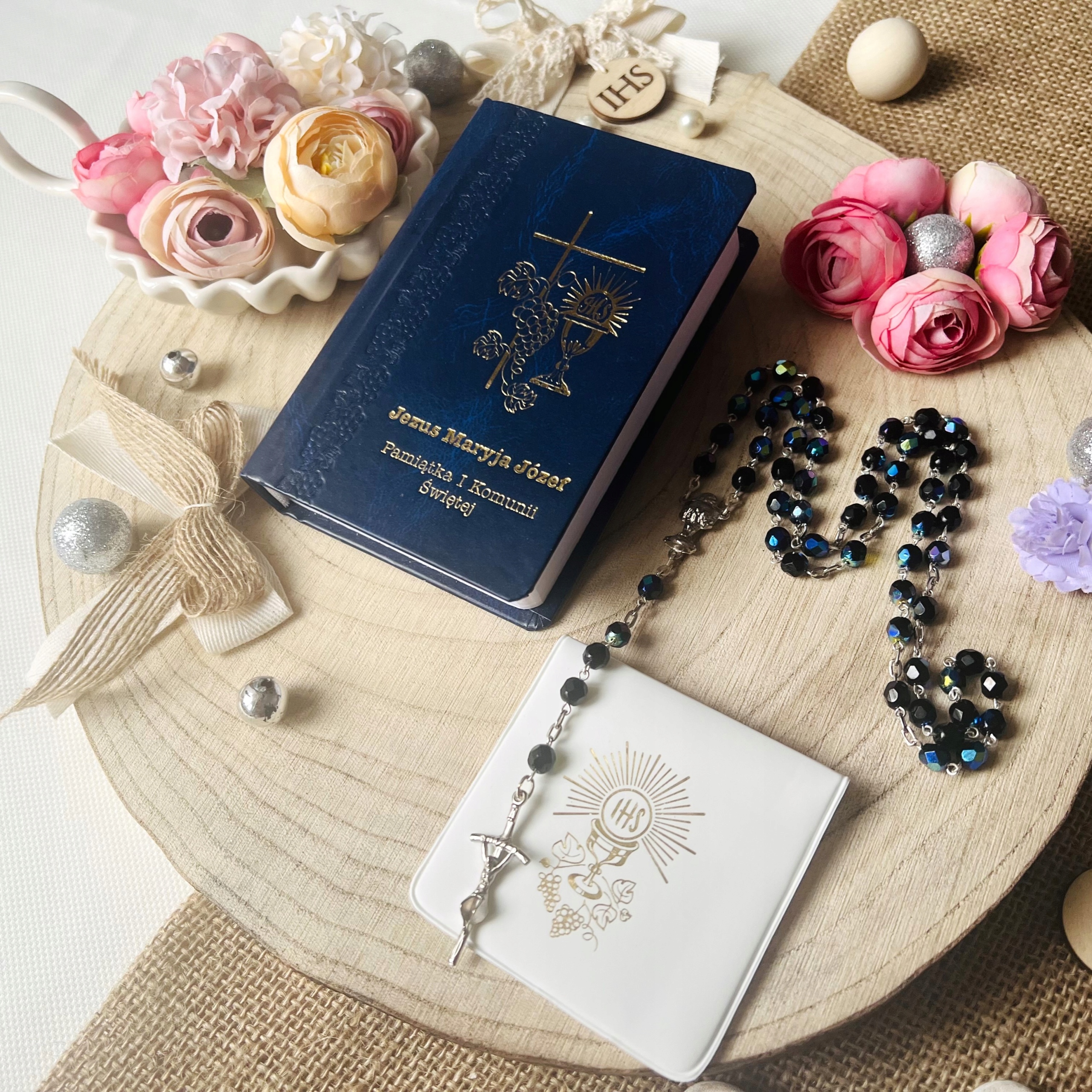 Набір для причастя - вервиця у футлярі та молитовник JMJ