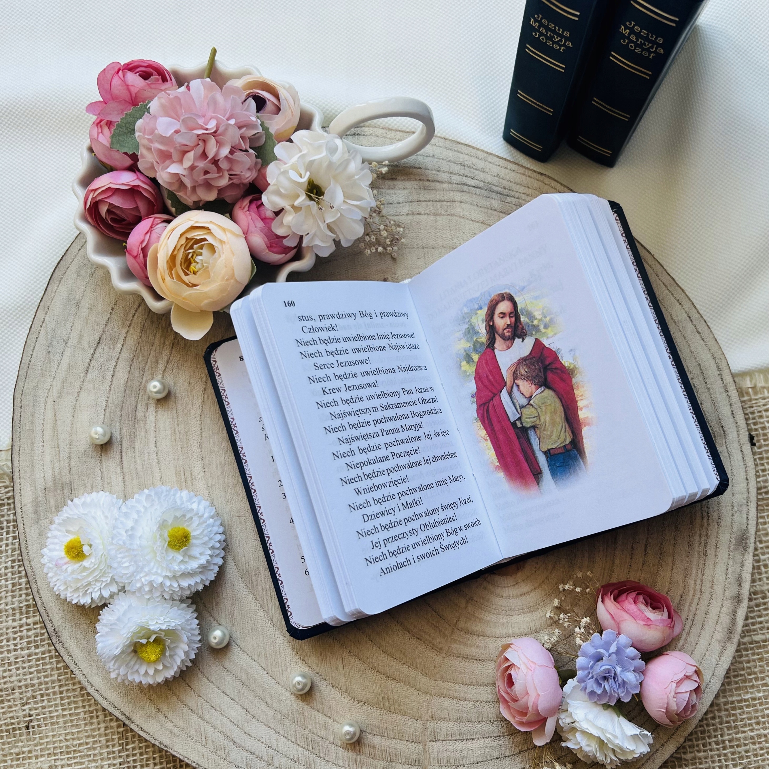 - МОЛИТВЕННИК - темно-синий, в ЖЁСТКОЙ коже- как обложка, размеры 109х71х22 мм, внутри 372 страницы и красивая графика. Крышка украшена сусальным золотом с надписью «Сувенир Первого Святого Причастия – Иисус, Мария, Иосиф».