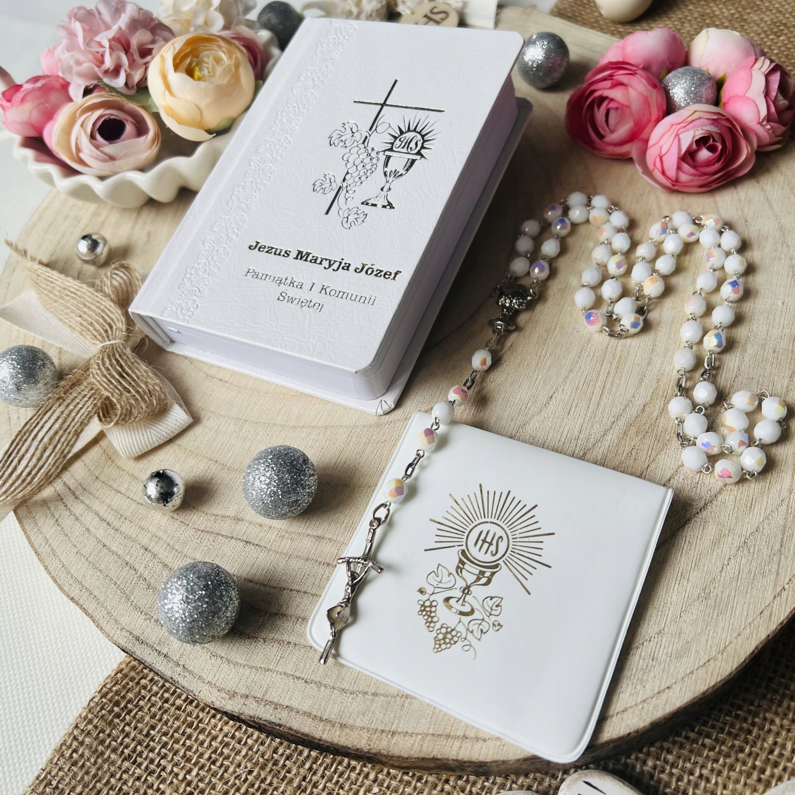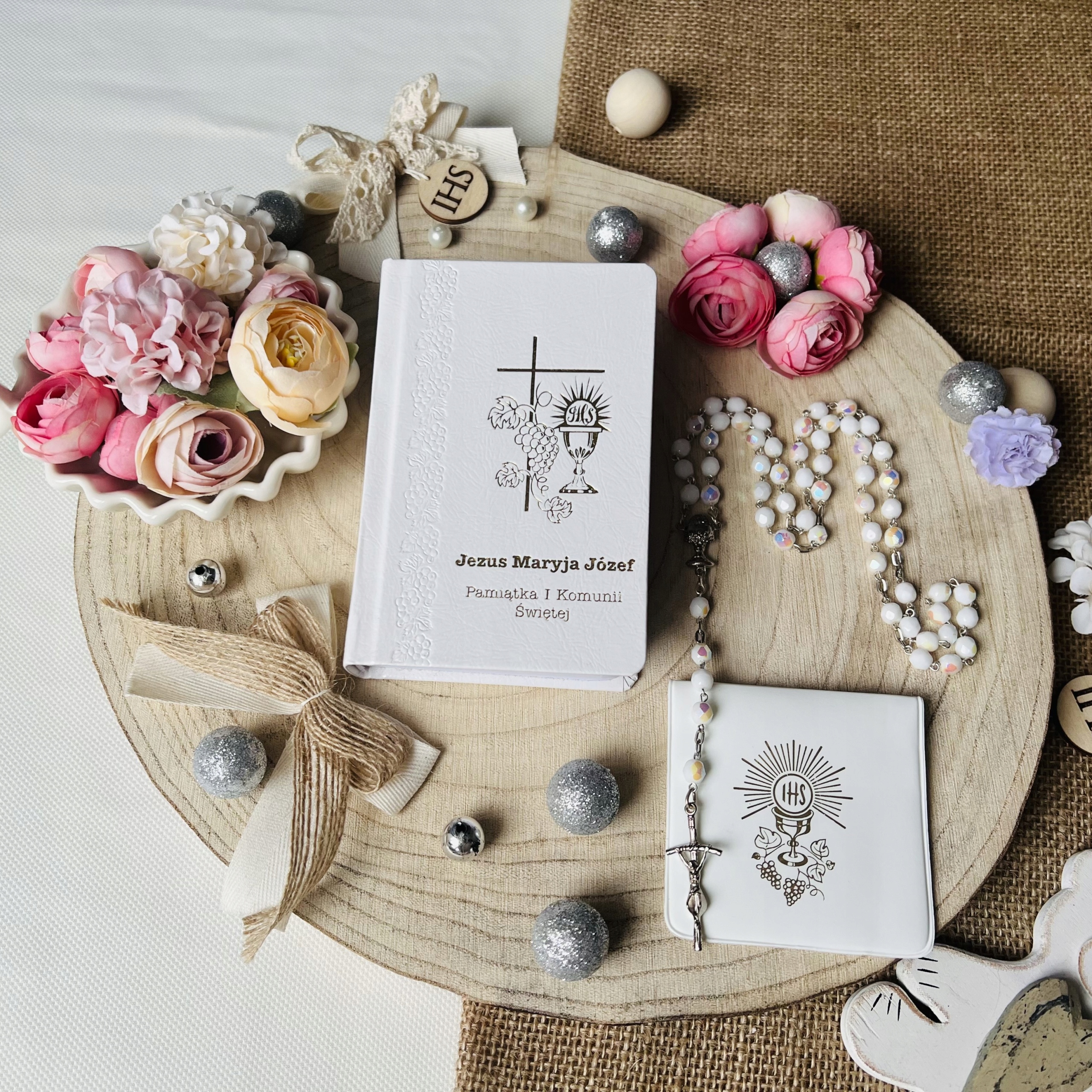 Набір для причастя - вервиця у футлярі та молитовник JMJ