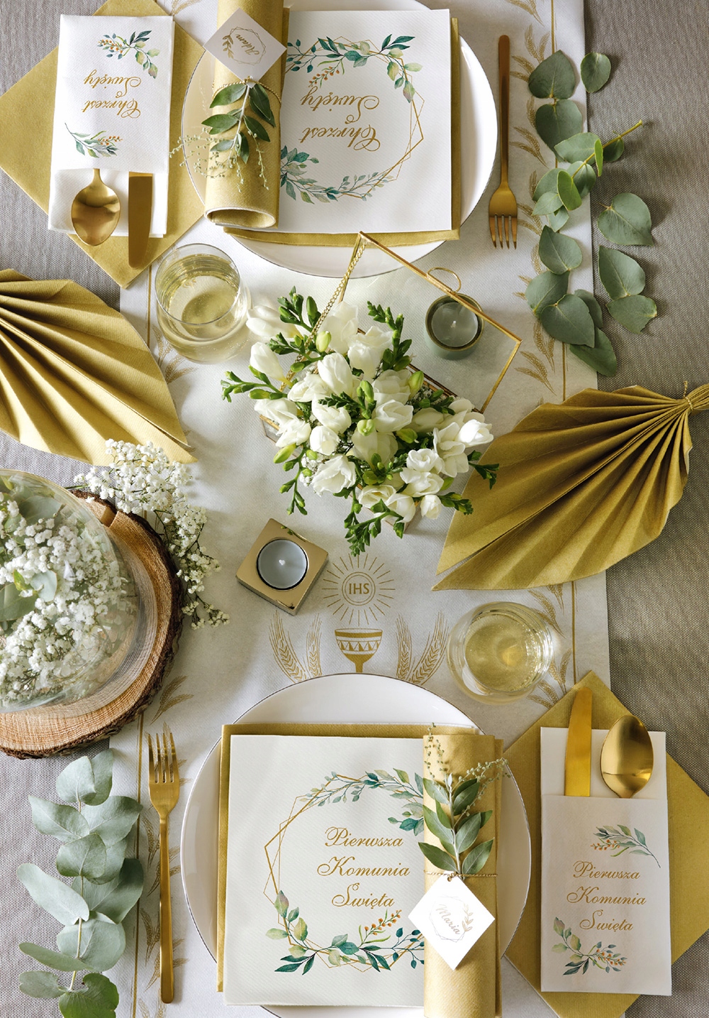 <р> Салфетки для причастия Первое Святое Причастие <ул>Салфетки для причастия, футляры для столовых приборов для Первого Причастия белого цвета с золотой печатной надписью Первое Святое Причастие и зелеными ветвями с листьями. Со вкусом украшенные декоративные салфетки, разложенные на столе, придадут ему красивый и торжественный характер. В нашем предложении представлен широкий ассортимент продукции с тем же мотивом, в том числе: скатерти, топперы, воздушные шары, приглашения. Благодаря такому широкому ассортименту вы сможете создать изысканный набор украшений для вашего торжества.
