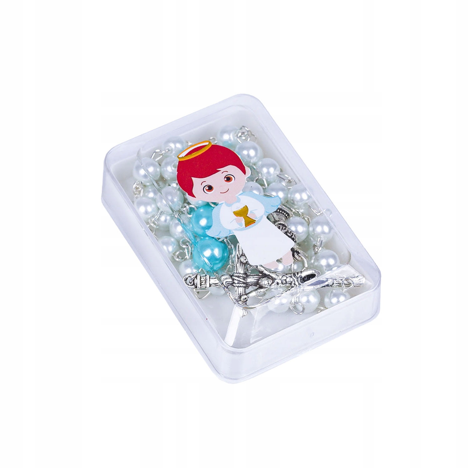 Бусины диаметром 6 мм и 8 мм с соединителем с изображением хосты с надписью IHS. Розарий станет не только прекрасным подарком к первому причастию, но и инструментом для красивой, детской молитвы.