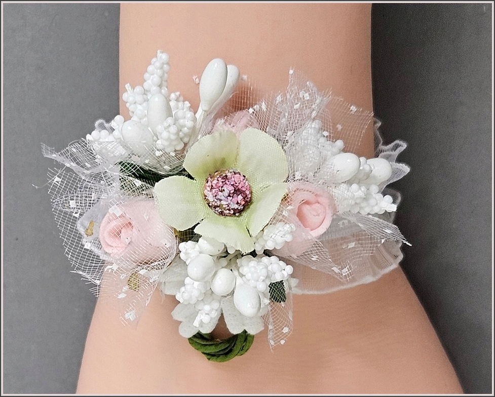 Сумка декорирована булавкой с пенопластовыми розами с белыми вставками в деревенском стиле.