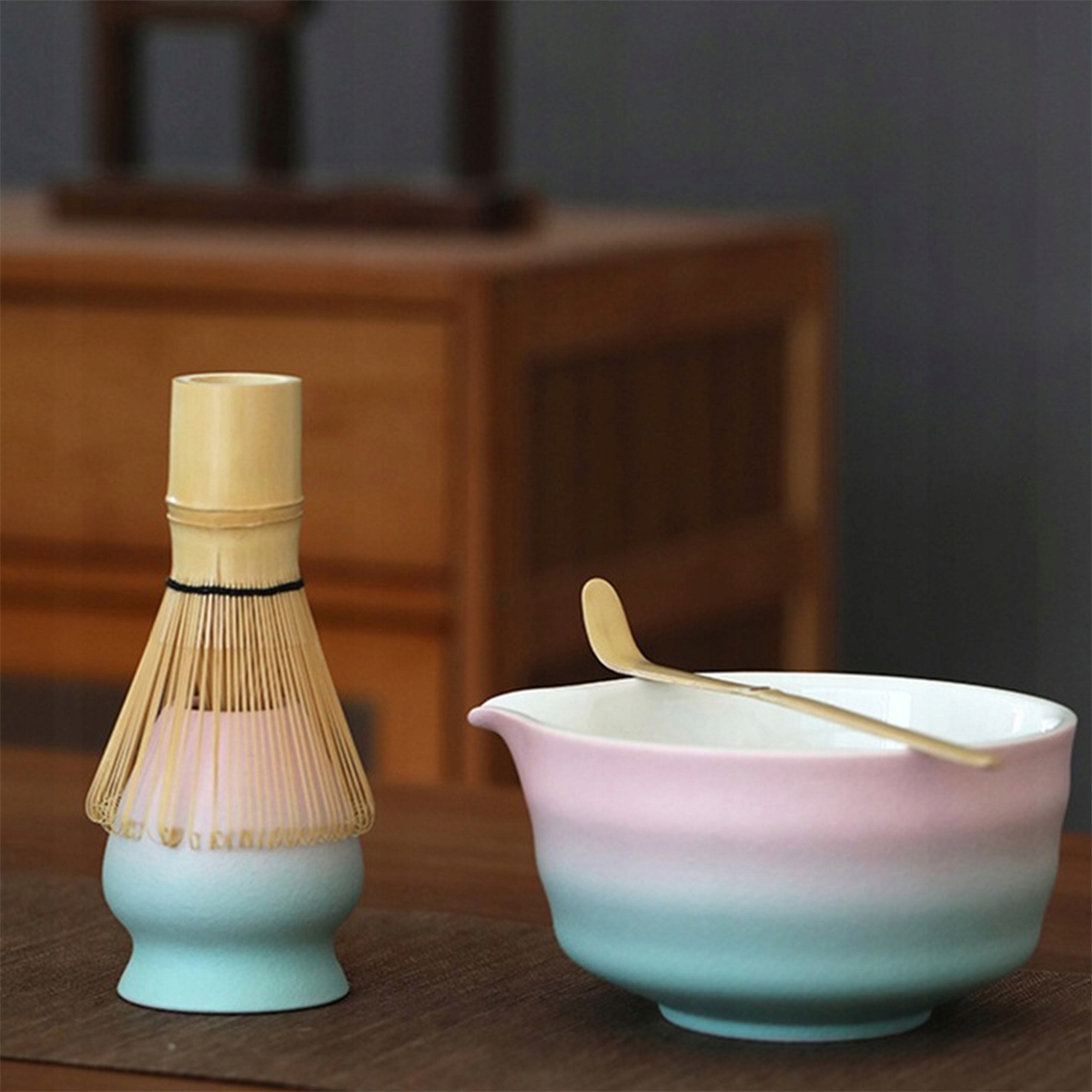 🍃🍃📍Набор из 8 венчиков для матча - миска для матча и бамбуковый венчик для матча, ложка, ситечко и т. д. Идеальный стартовый набор для церемонии матча (розовый градиент)🍃🍃📍