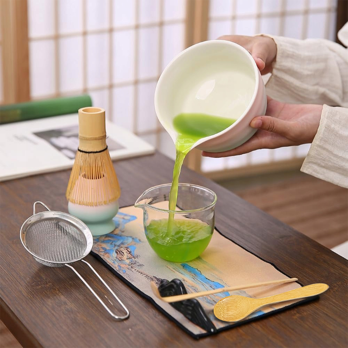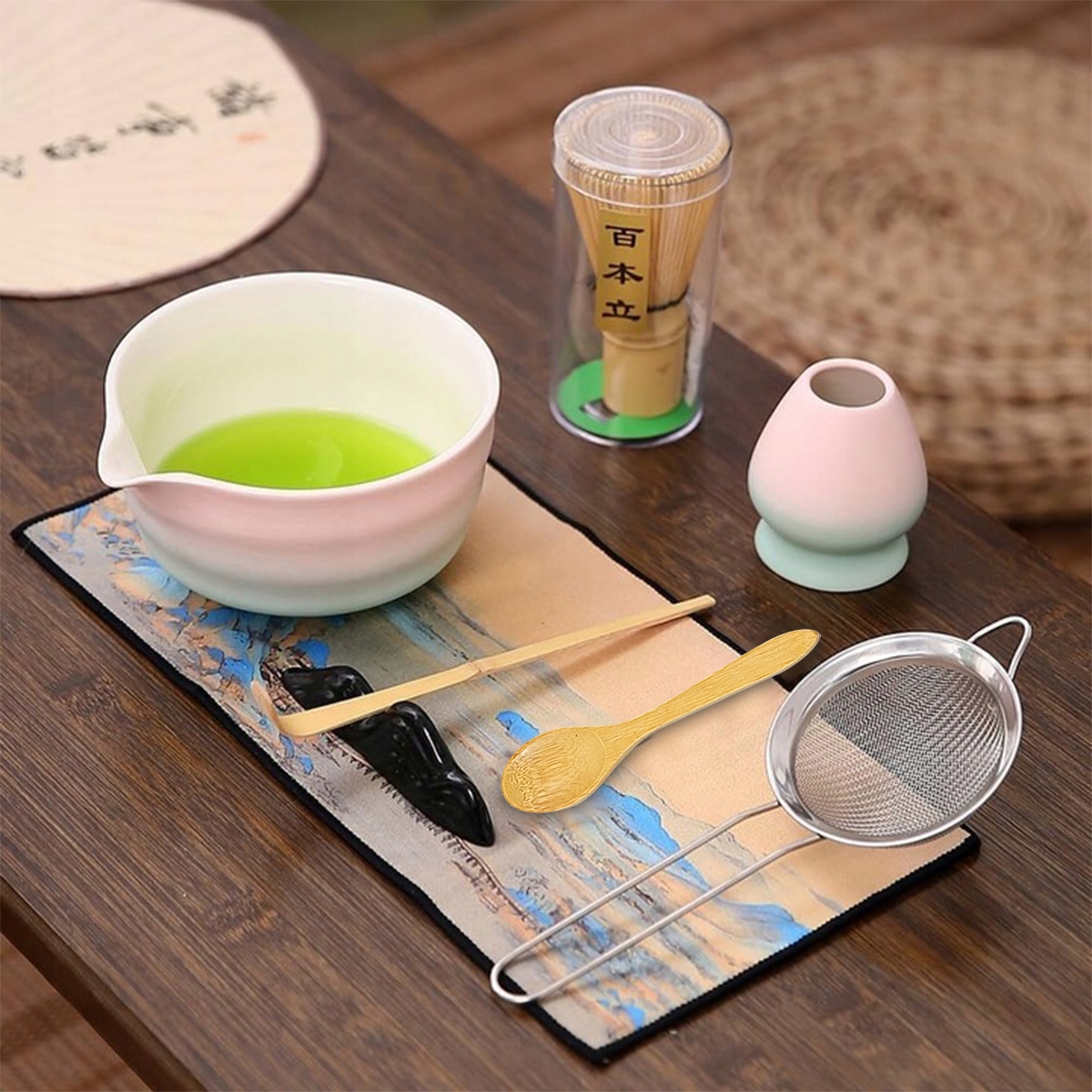 Набор для приготовления матча, японский чай матча — розовая керамика 8в1