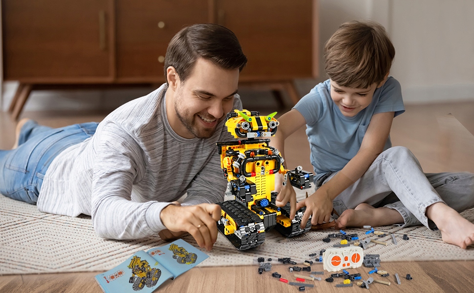 - ✍Данным строительным роботом можно управлять с помощью пульта дистанционного управления (расстояние управления до 20 метров) или соединения с приложение.