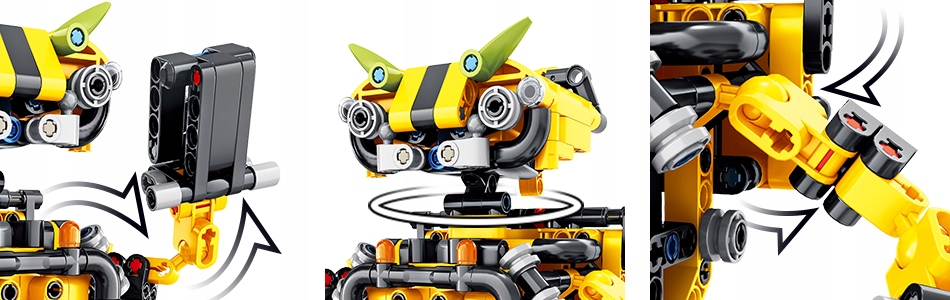 - ✍На голове и руке робота имеются движущиеся части, когти могут открываться, голова может вращаться, а рука может свободно вращаться на 360° вверх и вниз, чтобы игрушечный робот-строительный блок мог принимать различные крутые позы.