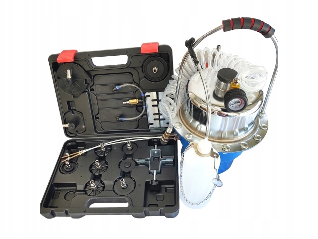 Устройство подключается к сети сжатого воздуха с одной стороны и к прокачному отверстию тормозной системы с другой. Вакуум, создаваемый в баке, вызывает высасывание жидкости.