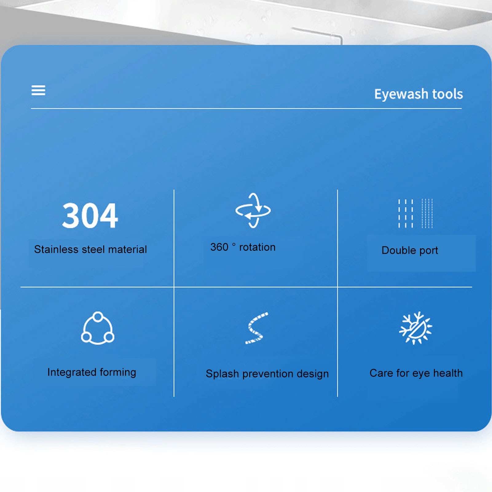 2. НАБОР ДЛЯ ПРОМЫВАНИЯ ГЛАЗ: Средство для промывания глаз и аксессуары изготовлены из полированной нержавеющей стали. Прочный и устойчивый к коррозии материал значительно продлевает срок его службы. Кованый перепускной клапан контролирует выпуск воды, позволяя регулировать давление воды в соответствии с нашими потребностями и обеспечивая более плавный поток воды.