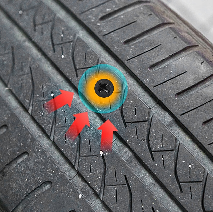 2. Смажьте резак прилагаемым клеем и вставьте его в отверстие, оставленное гвоздем, в соответствии с углом, под которым гвоздь вошел в шину, чтобы хорошо заполнить отверстие клеем.
