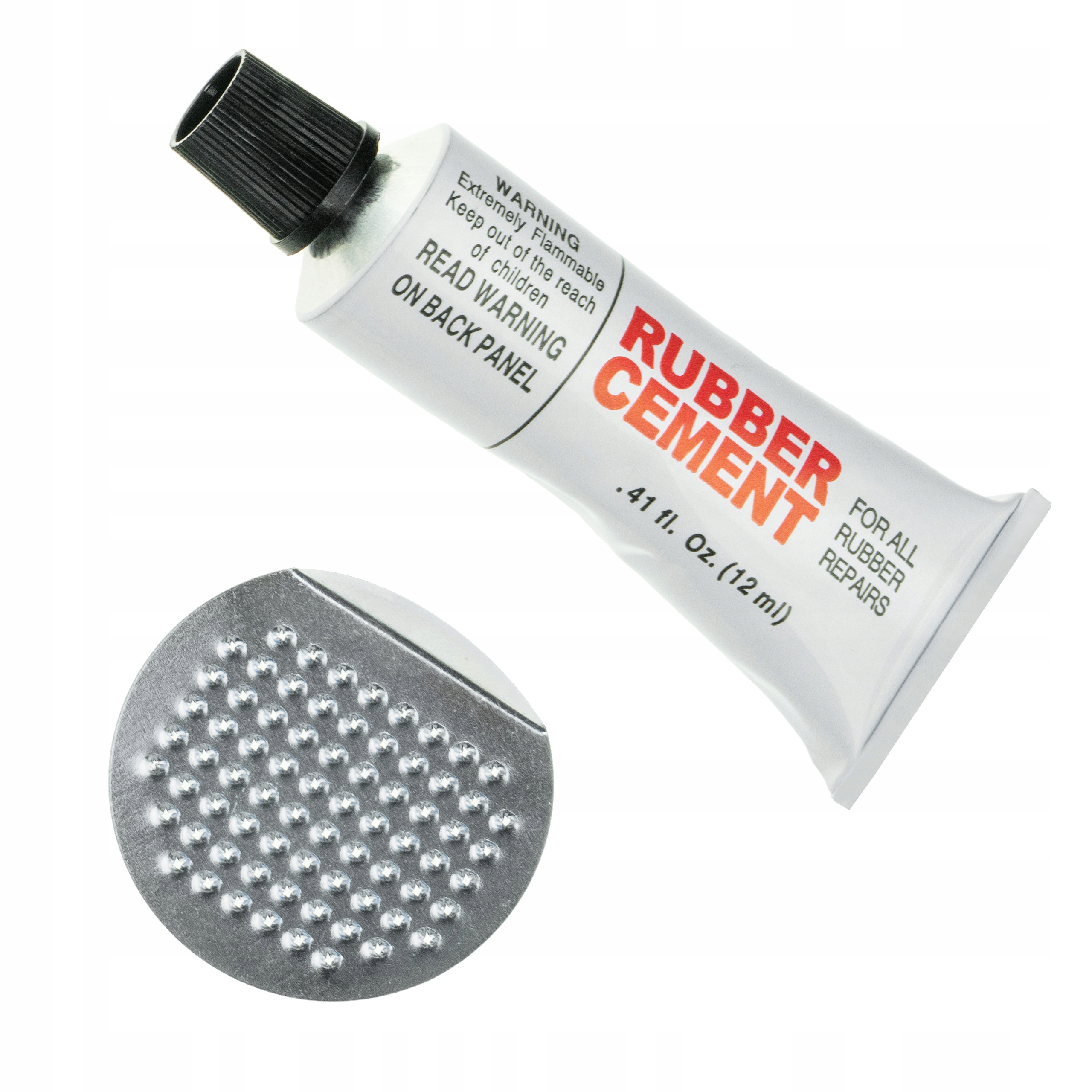 Набор также позволяет ремонтировать камеры - в набор входят 2 заплатки, резиновый клей и терка для черновой обработки.
