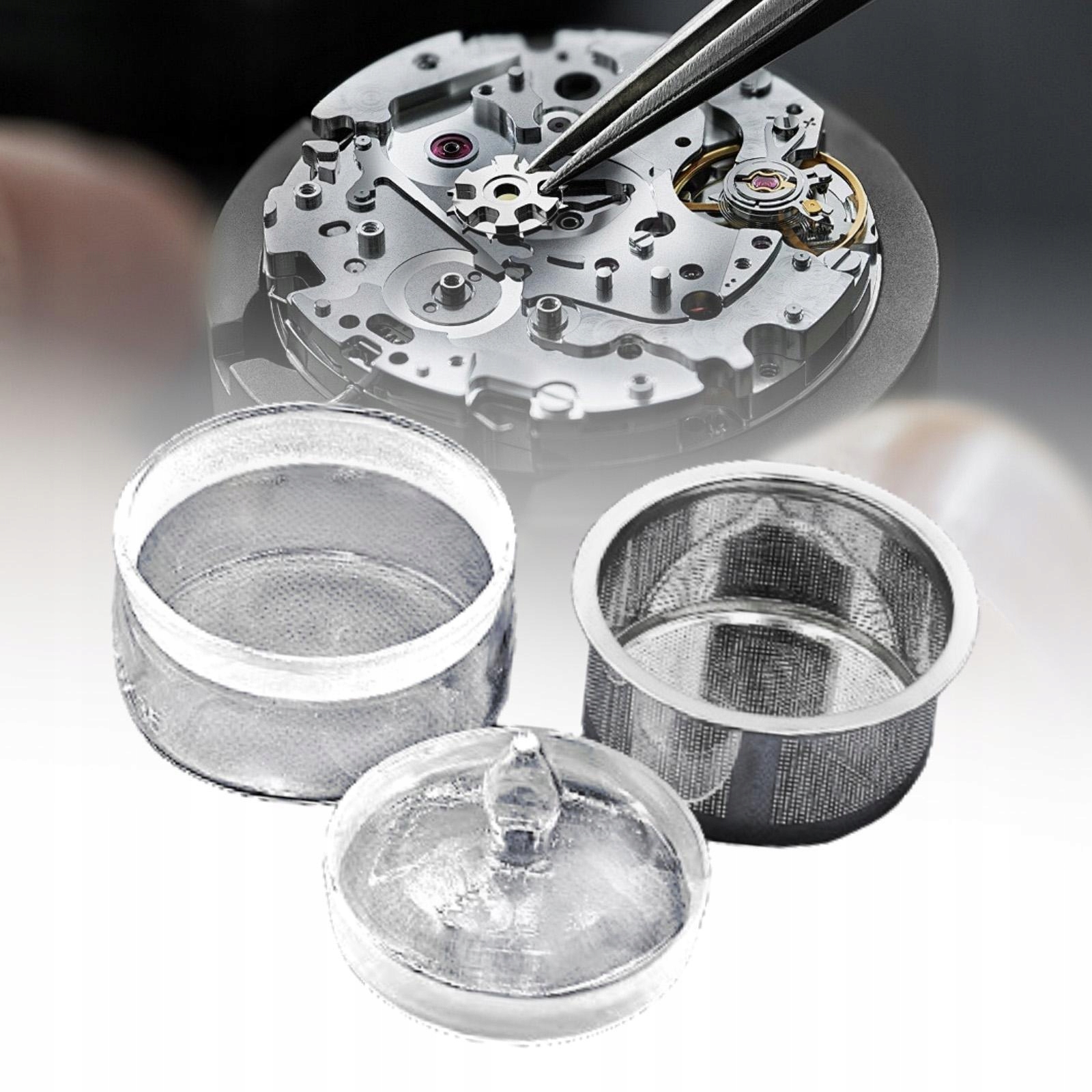 [Материал высокого качества]: чашка для очистки масла для часов изготовлена из высококачественного стекла, а сетка изготовлена из прочной нержавеющей стали, которая устойчива к износу при длительном и многократном использовании.