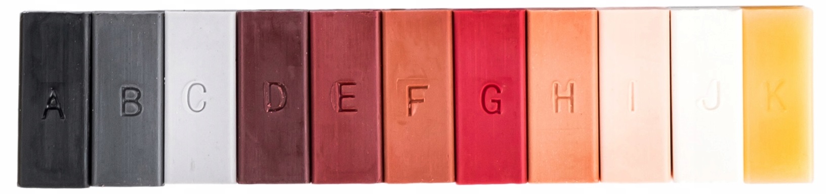 11 восковых палочек разных цветов позволяют выбрать нужный цвет.