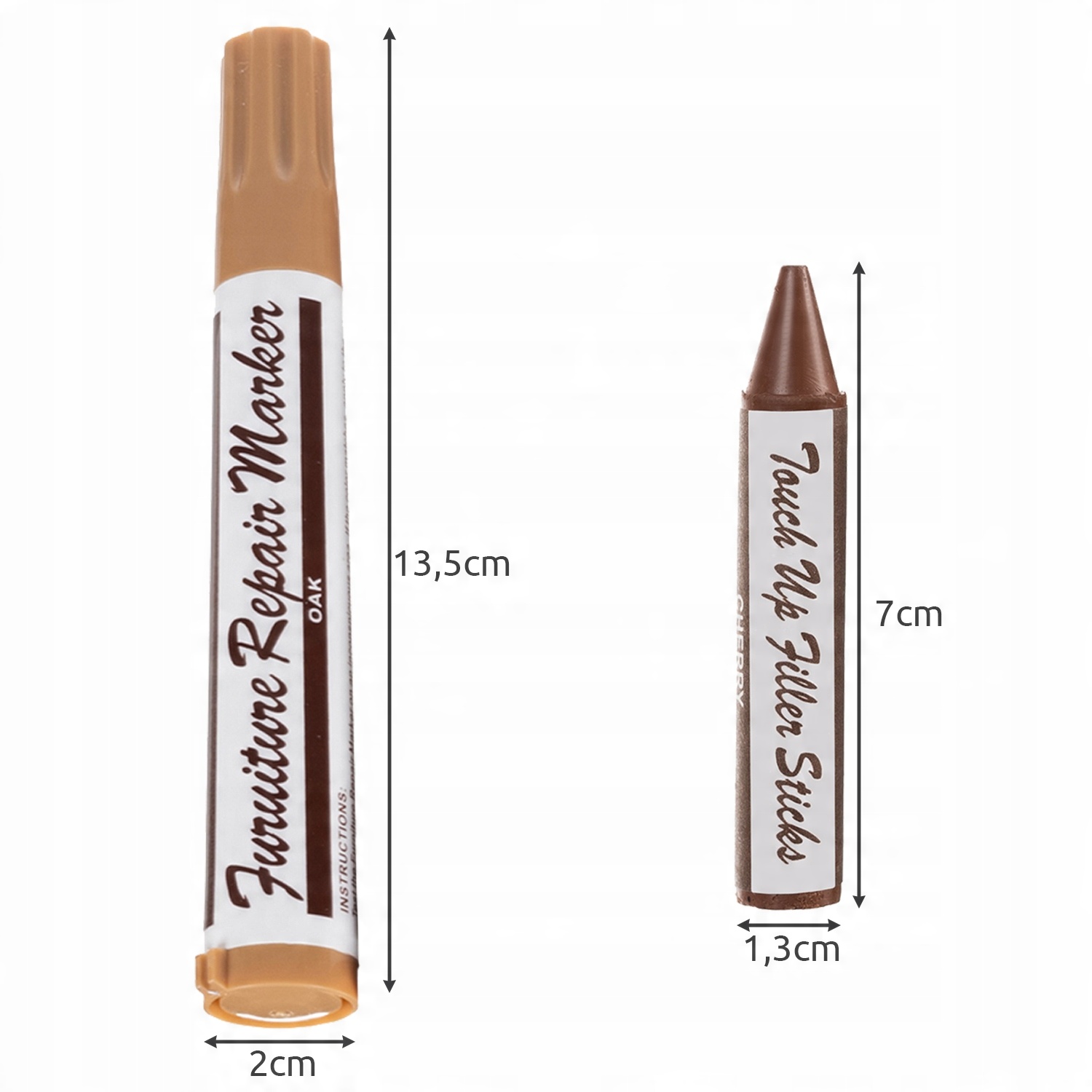 Небольшие повреждения и царапины на поверхности теперь можно легко отремонтировать с помощью нашего комплекта для ремонта мебели. Ремонт осуществляется путем заполнения более глубокого дефекта воском и прорисовки структуры древесины маркером соответствующего цвета. Комплект позволяет быстро устранить повреждения панелей, мебели, дверей и других изделий из дерева и древесных материалов. После использования ремкомплекта вам не придется «долго ждать», пока все высохнет. Маркеры быстросохнут. Но это еще не все, покрытие в зоне ремонта устойчиво к царапинам. Основа в виде полутвердого воскового мелка удобна в нанесении, вся дополняется маркером того же цвета, содержит масляные чернила, устойчивые к стирке, что гарантирует длительный эффект. Богатая цветовая гамма, входящая в комплект аж 10 различных: дуб, вишня, красное дерево, клен, орех, черный означает, что вы можете использовать его для мебели светлых, темных и средних цветов.