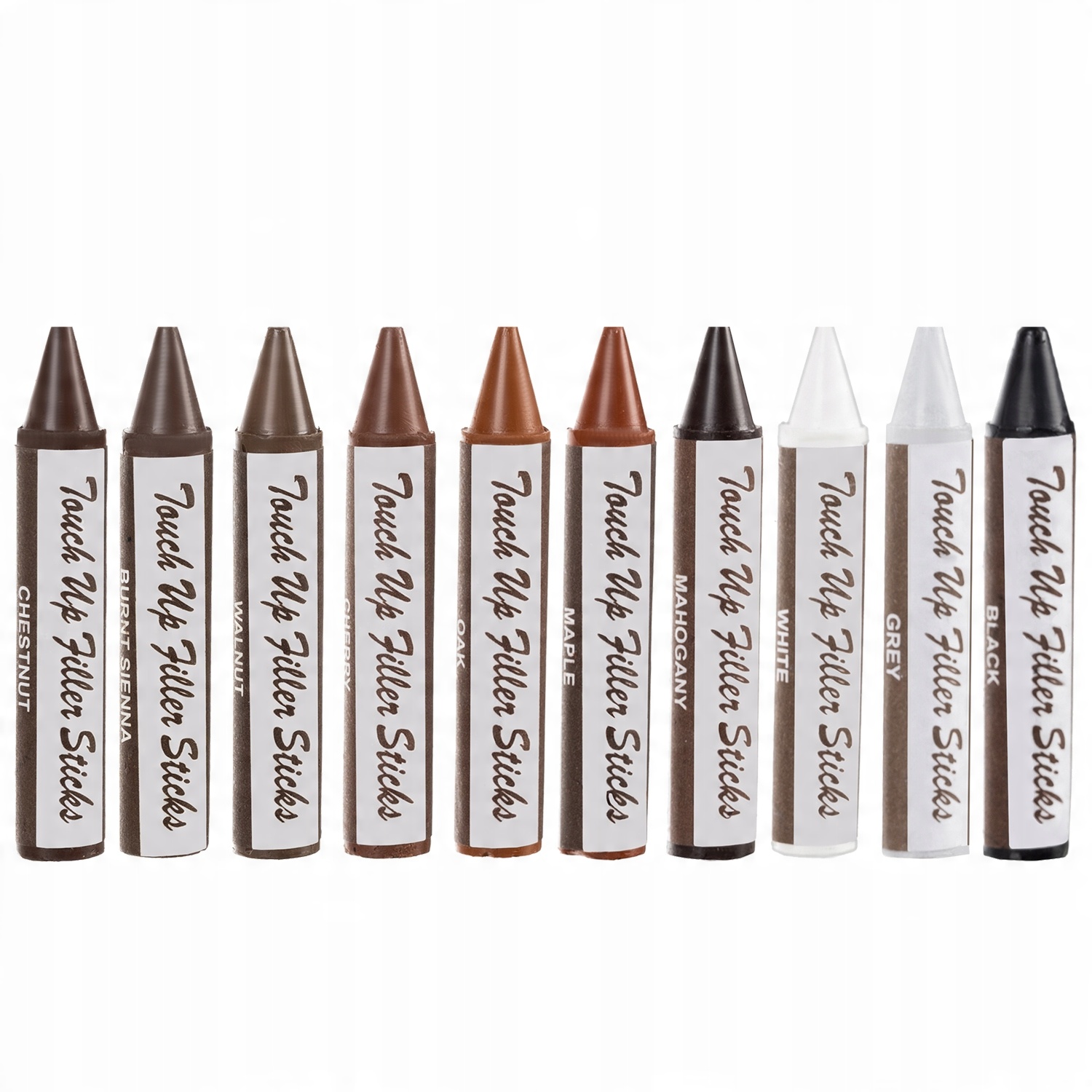 - СПЕЦИФИКАЦИЯ: Количество цветов: 10: черный, серый, белый, красное дерево, клен, дуб, вишня, орех, сиена жженая, каштан + бесцветный; тип: маркеры + воски; материал: пластик; размеры маркера: 13,5/2/2см; размеры мелков: 7/1,3/1,3 см; вес: 0,295 кг; вес в упаковке: 0,304кг.