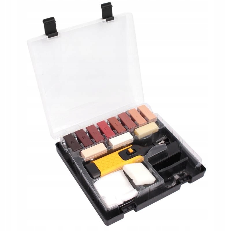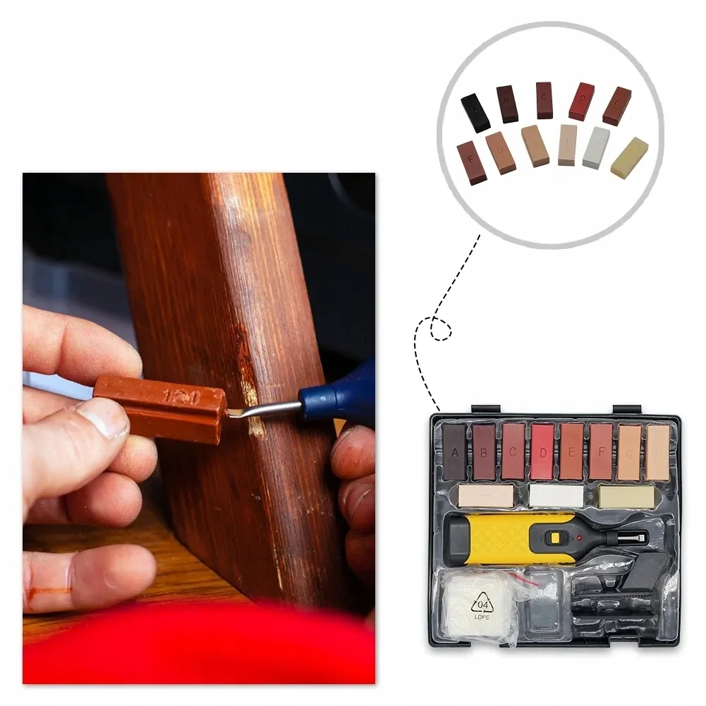 Набор позволяет самостоятельно заполнять дефекты и царапины на деревянных поверхностях, таких как панели, паркет, мебель и т.п..
