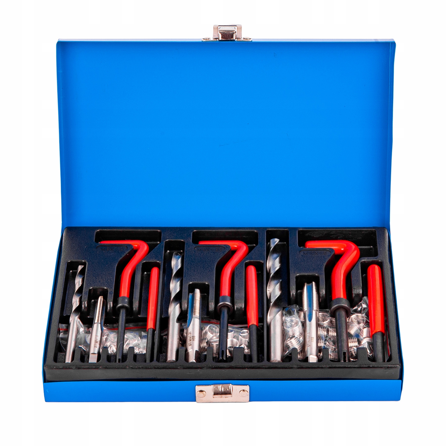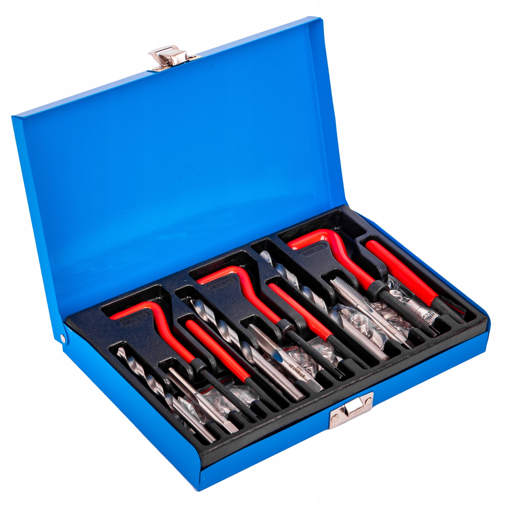 Набор предназначен для ремонта поврежденной резьбы в двигателях и других узлах автомобилей. Сверла и метчики изготовлены из быстрорежущей стали HSS4341.