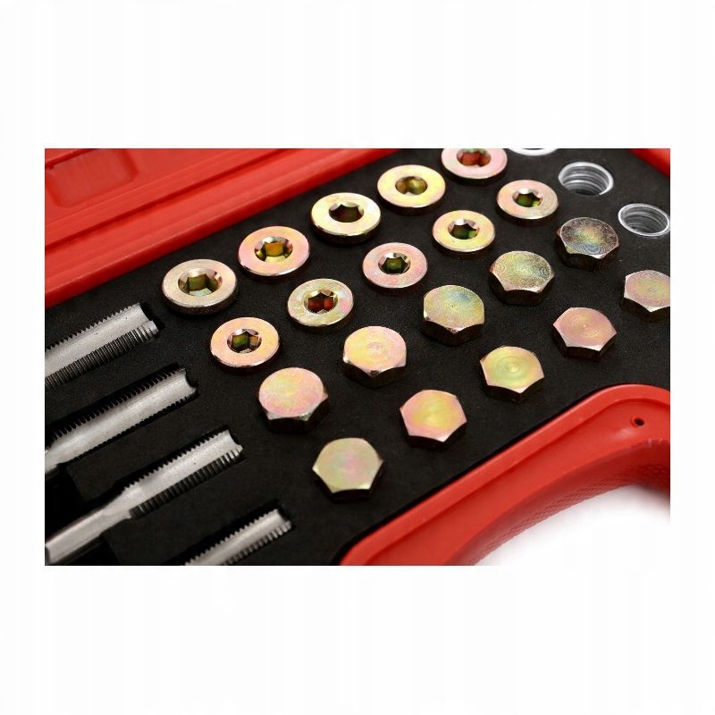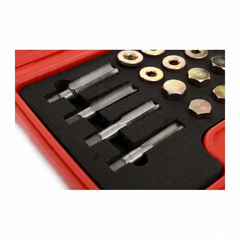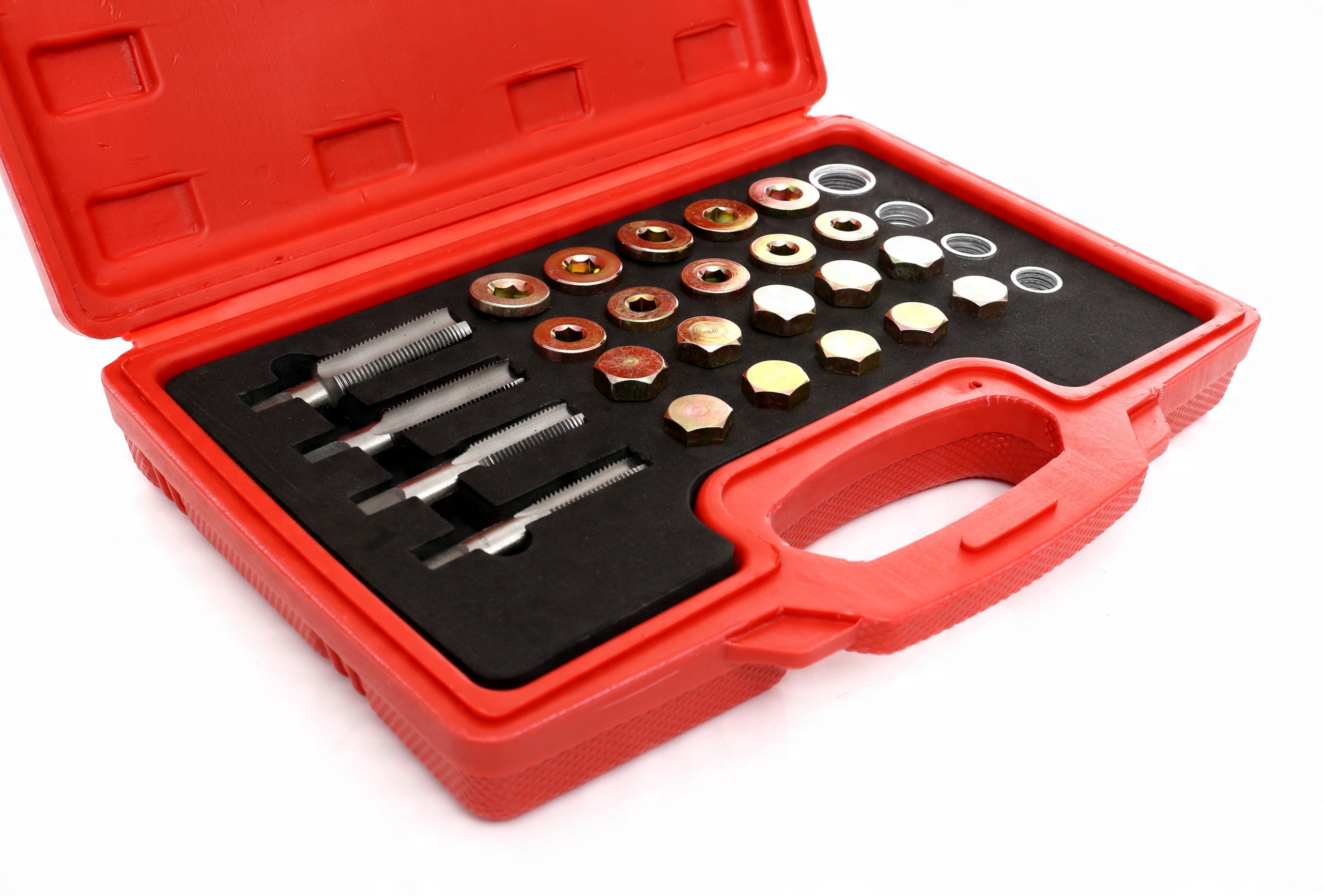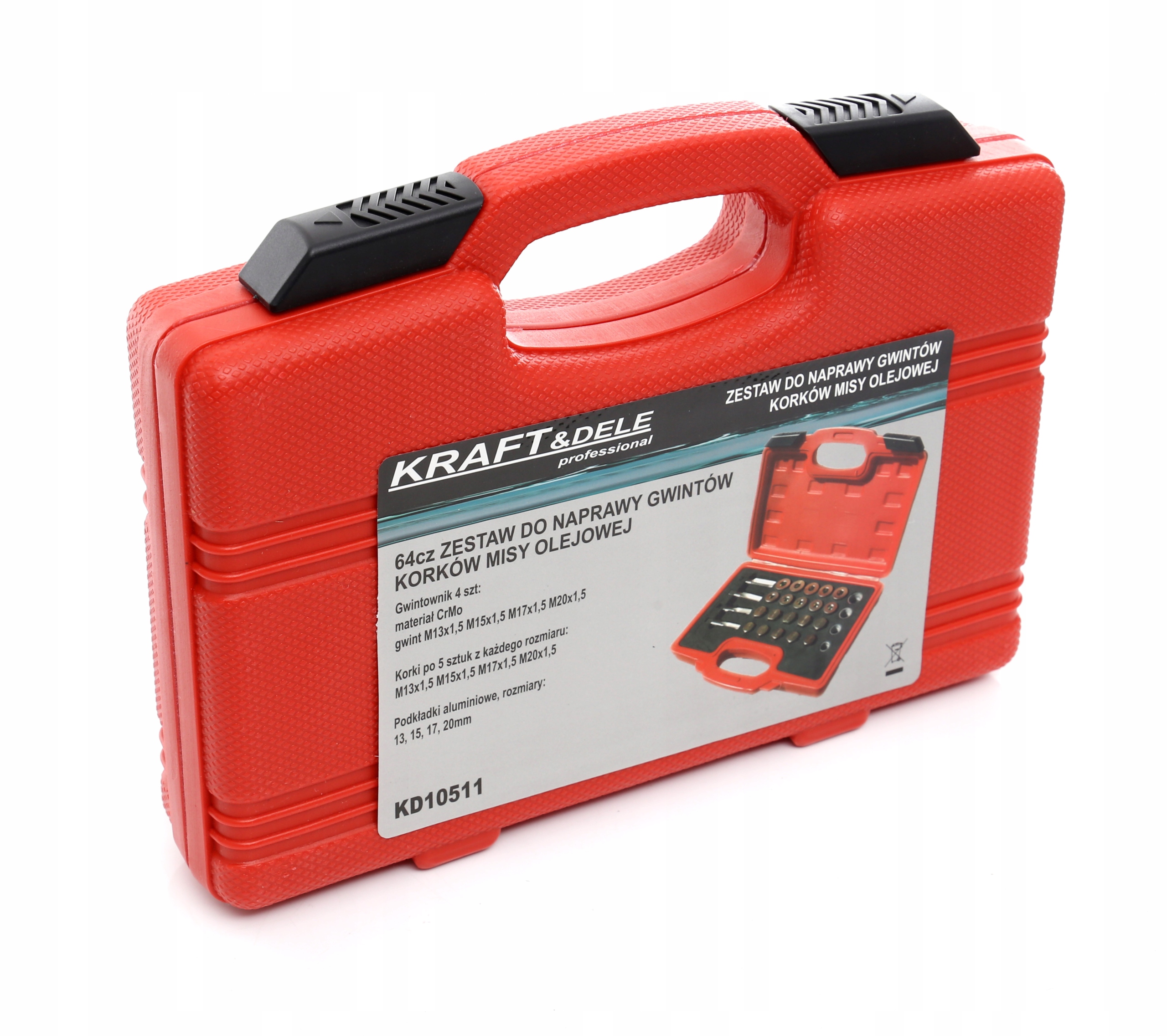 Набор кранов и пробок с символом KD10511 для простого ремонта резьбы масляного поддона, коробки передач и других сливных пробок. Подходит для большинства резьб, обычно используемых в легковых автомобилях и легких грузовиках. Набор предназначен для автосервисов, ремонтных мастерских и сервисных центров.