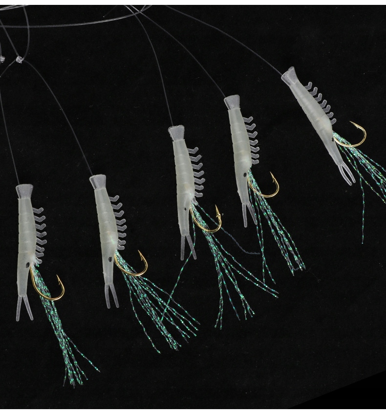 Профессиональный набор бирок для селедки и трески с люминесцентной наживкой в форме креветки. Идеально подходит для ловли морской и пресноводной рыбы – хорошо работает как при ловле с берега, так и с лодки.
