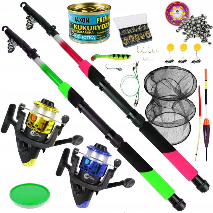 Рыбалка набор 2x стержня 2x катушка Jaxon приманка для вращения плавания