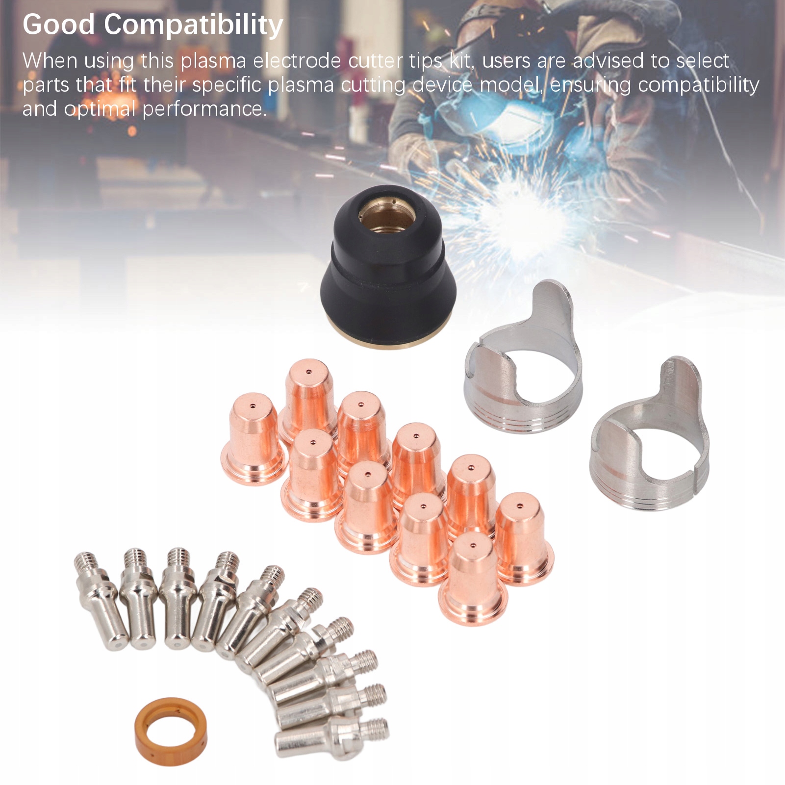 4. Хорошая совместимость: при использовании этого комплекта наконечников для плазменной резки пользователям рекомендуется выбирать детали, соответствующие конкретной модели устройства плазменной резки, обеспечивая совместимость и оптимальную производительность.