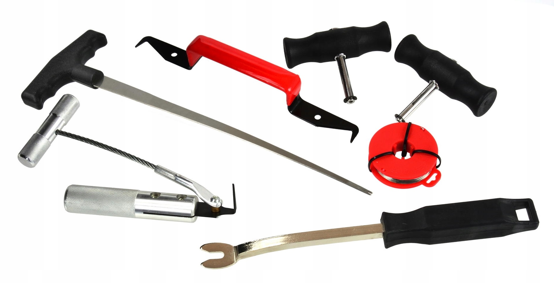 Набор из 7 предметов для профессиональной разборки (резки) стекол автомобиля.
