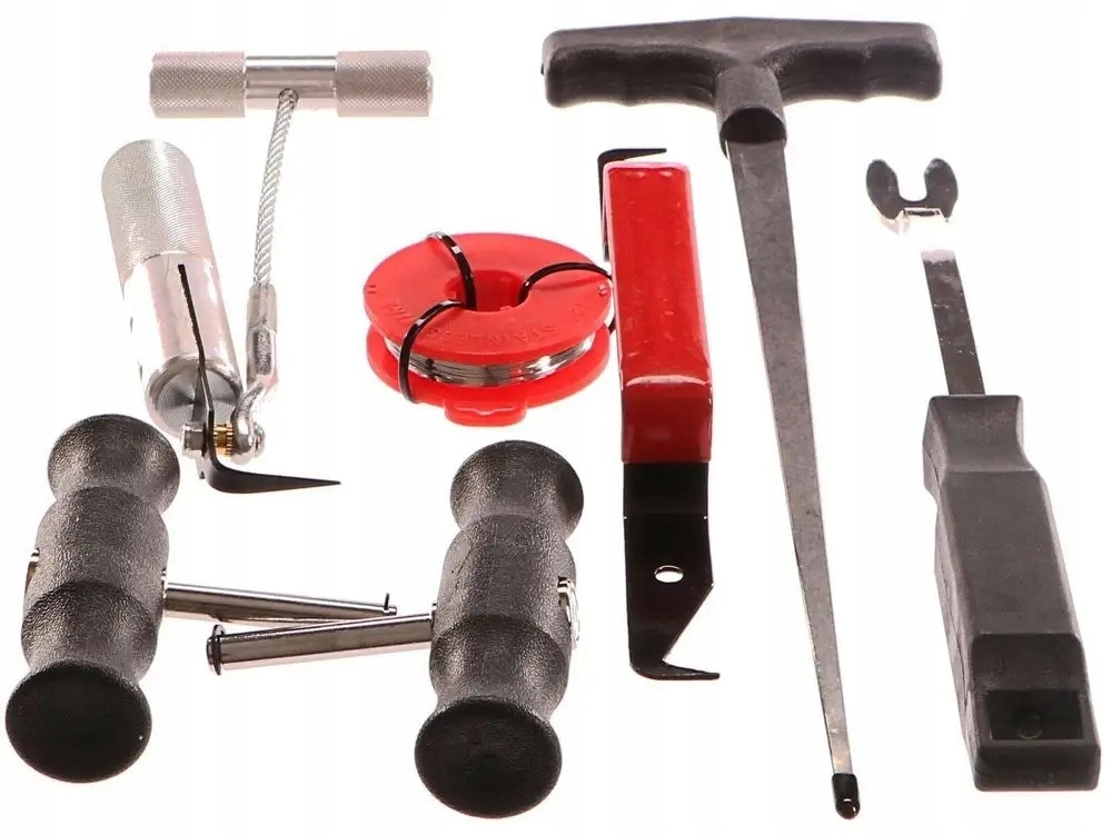 Шило, входящее в комплект, является инструментом для мелких исправлений, а съемник обивочных скоб понадобится при демонтаже обивку, чтобы добраться до окон автомобиля.