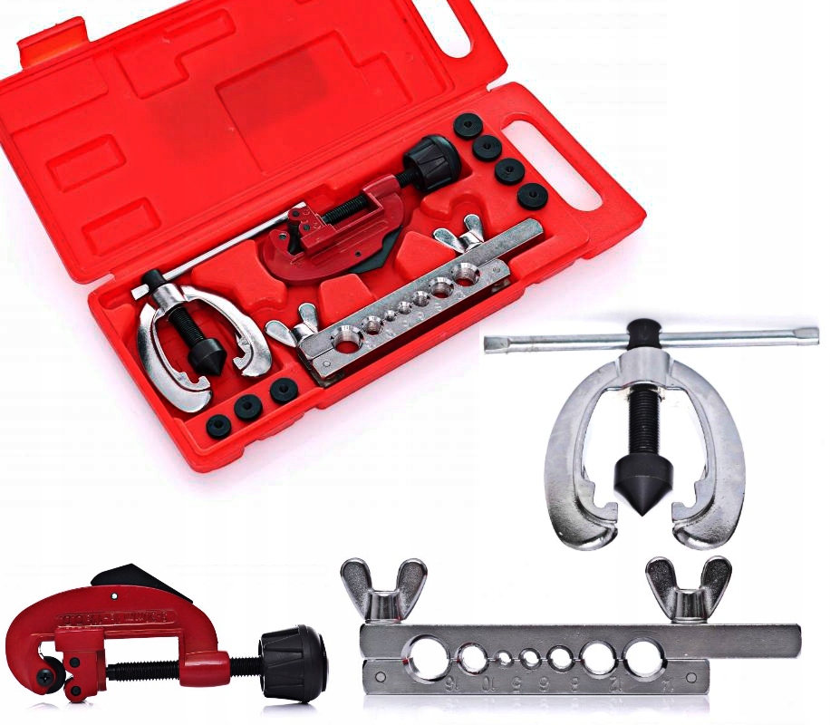 Набор из 10 элементов с фрезой польского бренда Kraft&Dele необходим в каждой мастерской – набор для резки алюминиевых и медных тормозных магистралей и изготовления конических соединительных фланцев.