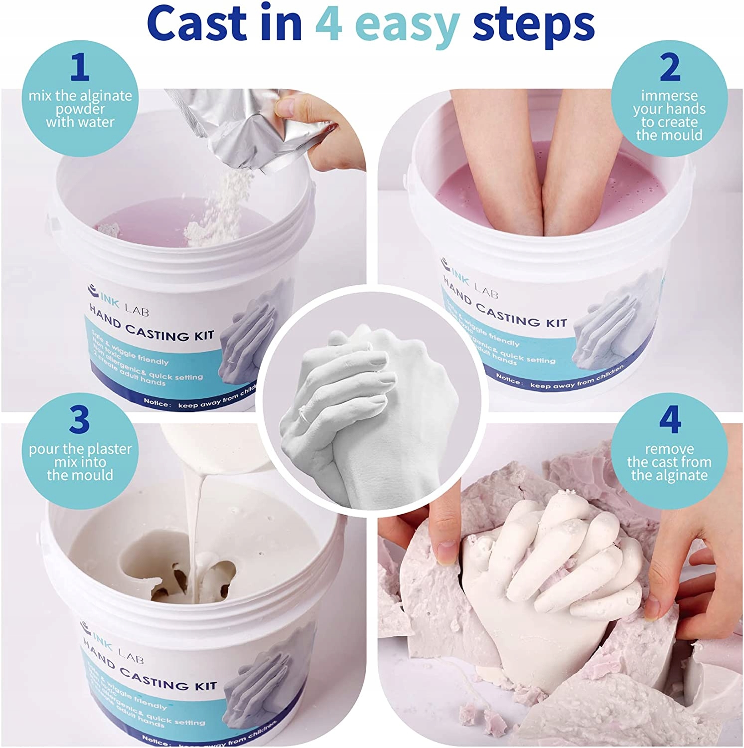 Альгинатный формовочный порошок, изготовленный из натуральных органических морских водорослей, безопасен для чувствительной кожи, биоразлагаем и экологичен. Кроме того, наша штукатурка устойчива к сколам и является долговечным сувениром.