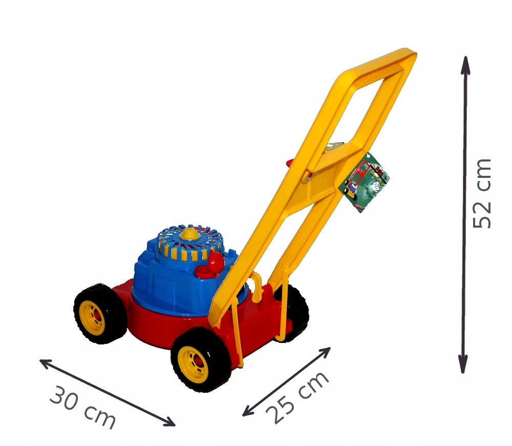 Еще один элемент набора — газонокосилка. Изготовлен из пластика, имеет множество гаджетов. К колесам прикреплен элемент, издающий звук при толкании газонокосилки – характерный «щелк». Такое решение доставит ребенку массу удовольствия и ощущение, что он управляет настоящим устройством. Складной кронштейн имеет панель с имитацией ключа и часами. На корпусе двигателя имеется крышка бензобака и имитация системы запуска. Все эти элементы доставляют массу удовольствия и создают ощущение, что профессиональная садовая техника есть не только у родителей.