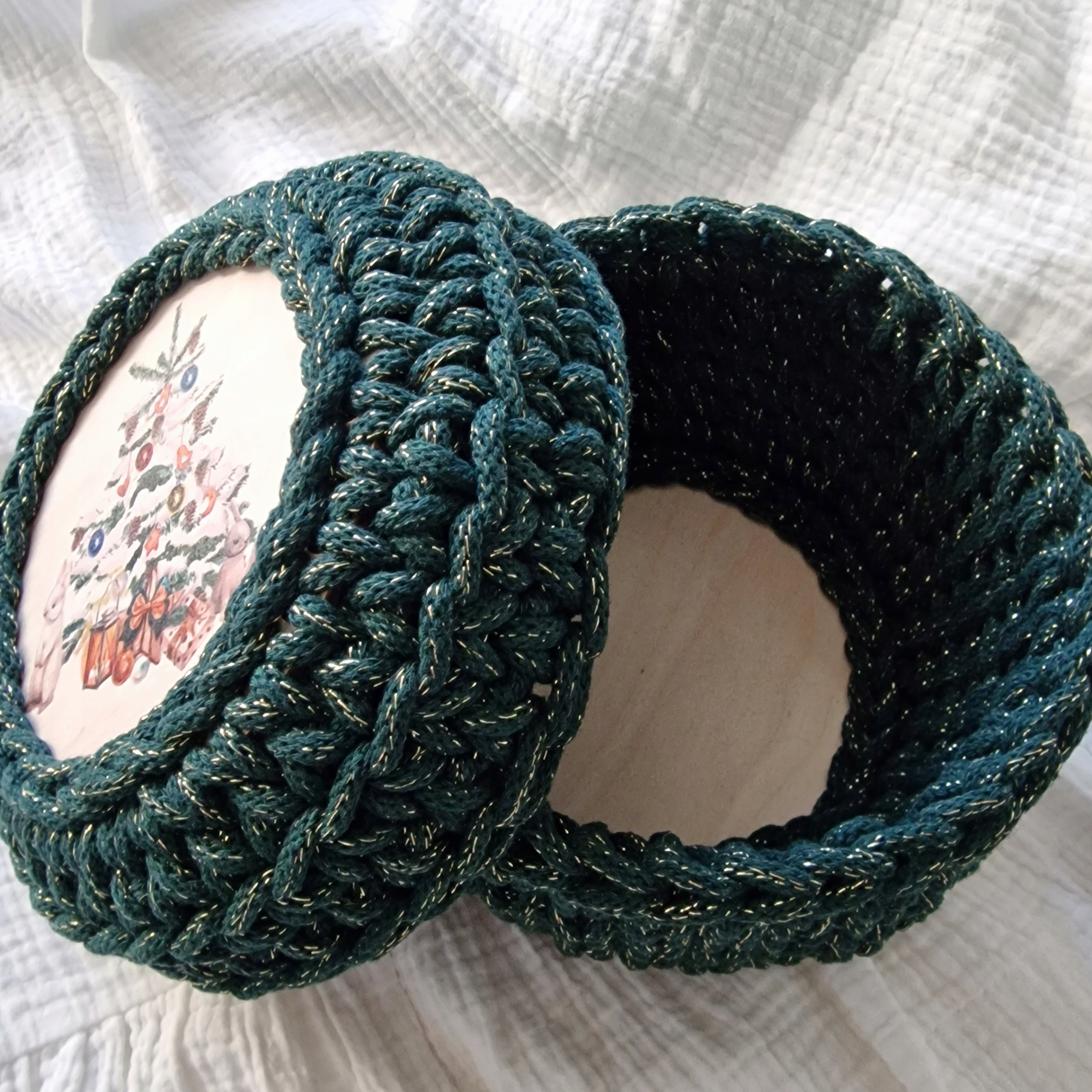 Элементы, входящие в комплект, позволят вам сделать корзину диаметром ок. 15 см с крышкой или две открытые емкости диаметром ок. 15 см. Вначале используйте крючок меньшего размера, чтобы провязать основания веревкой (крючок меньшего размера облегчает работу с основанием), в последующих рядах используйте крючок большего размера.
