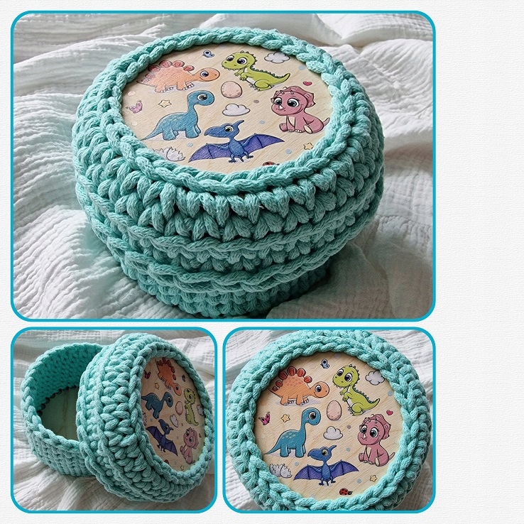 Предметом предложения является комплект для САМОСТОЯТЕЛЬНОГО ИЗГОТОВЛЕНИЯ КОРЗИНЫ крючком на основе из фанеры или плиты ХДФ.