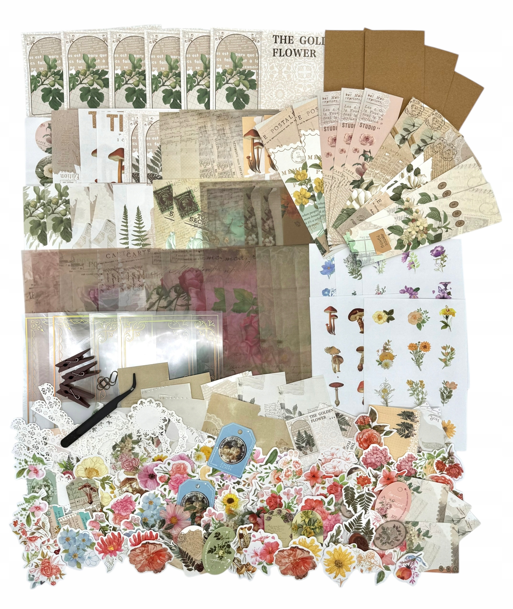 НАБОР ДЛЯ СРАПБУКИНГА 251 ЭЛЕМЕНТ НАКЛЕЙКИ БУМАЖНЫЕ ЦВЕТЫ ЦВЕТЫ