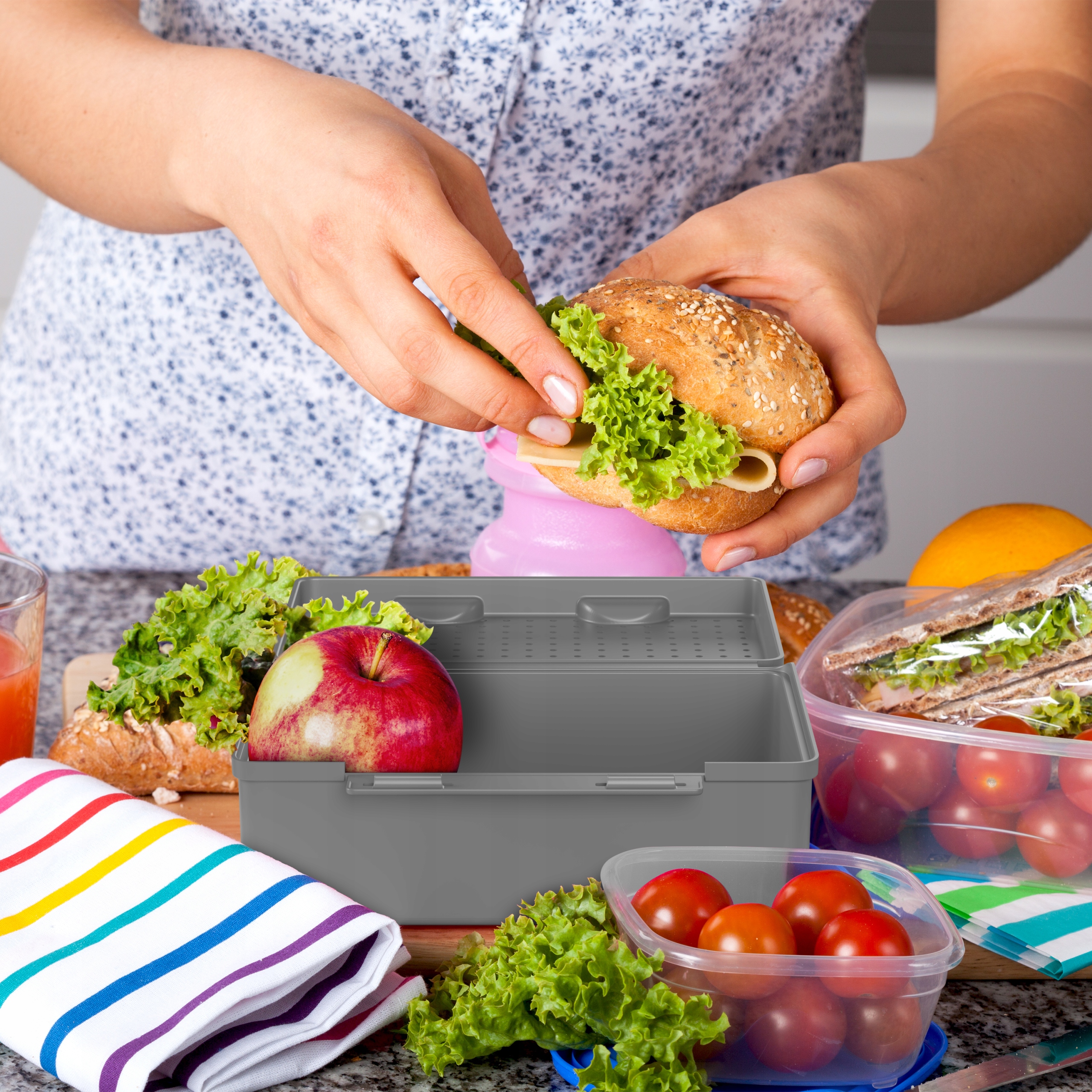 Ланчбокс закрывается на две прочные и функциональные защелки, которые предотвращают случайное открытие в сумке или рюкзаке. Объем 1,27 л позволяет приготовить полноценный обед для вашего ребенка.