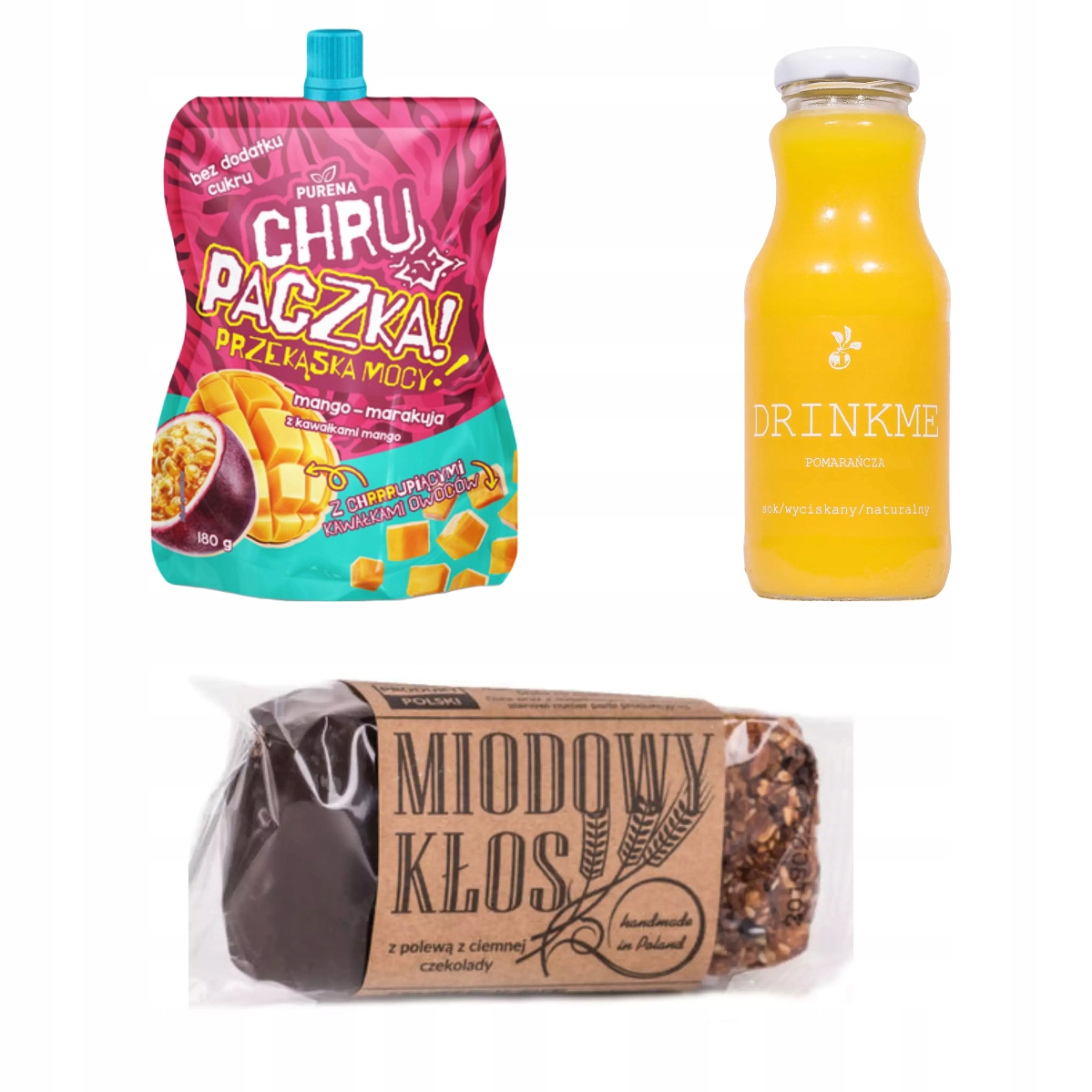 ✨ Представляем набор для завтрака, состоящий из сочного апельсинового сока, батончика Miodowy Kłos и хрустящего мусса из маракуйи и манго, который идеально подходит для начала дня. Этот идеальный набор создан специально для людей, которые ценят полезный и вкусный завтрак.