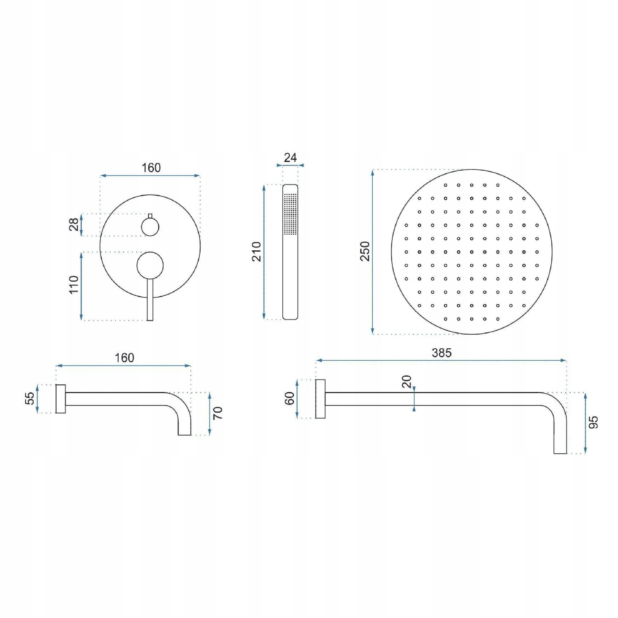 - В комплект входят: смеситель с переключателем, тропический душ, излив для ванны, душевая рукоятка, душевой шланг, душевой кронштейн< /li >