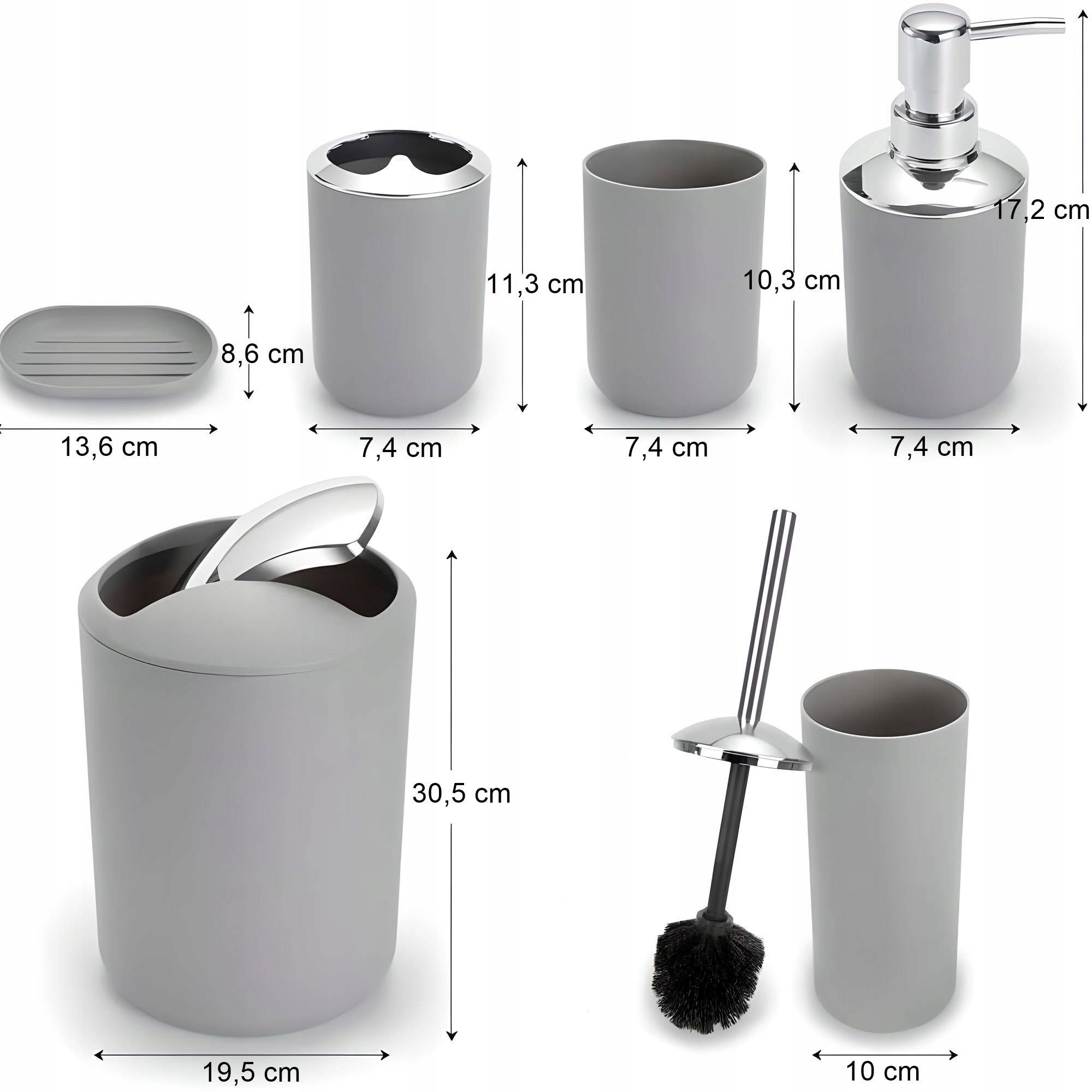 Набор для ванной комнаты Flores, 6 предметов, серый