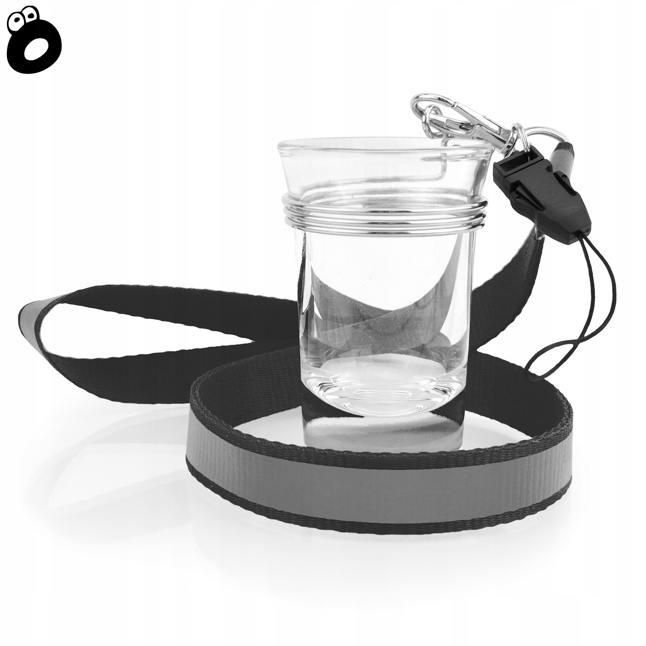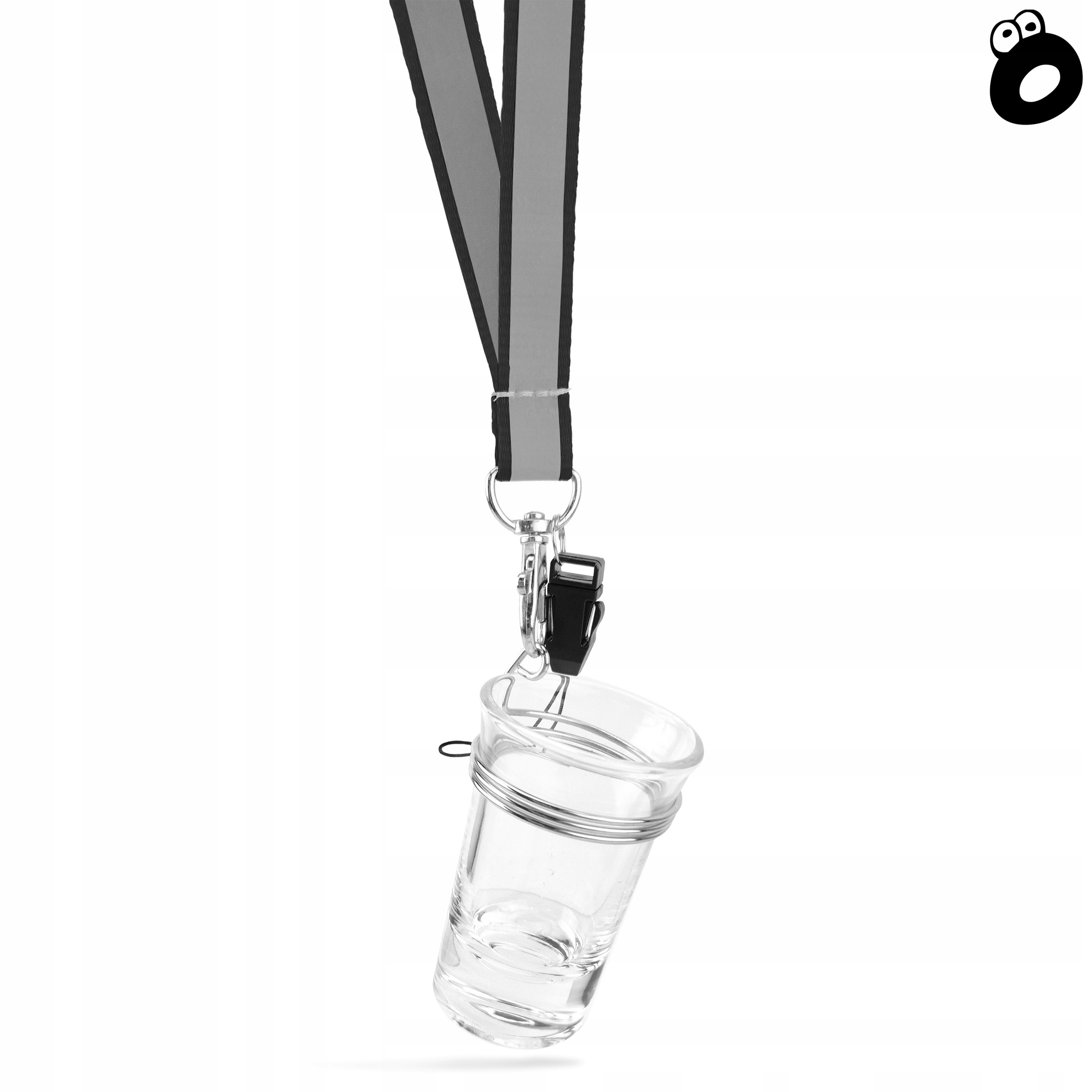В комплект входит стакан объемом 40 мл с зажимом, светоотражающий шнурок с карабином и шнурок для бейджа или ключей.