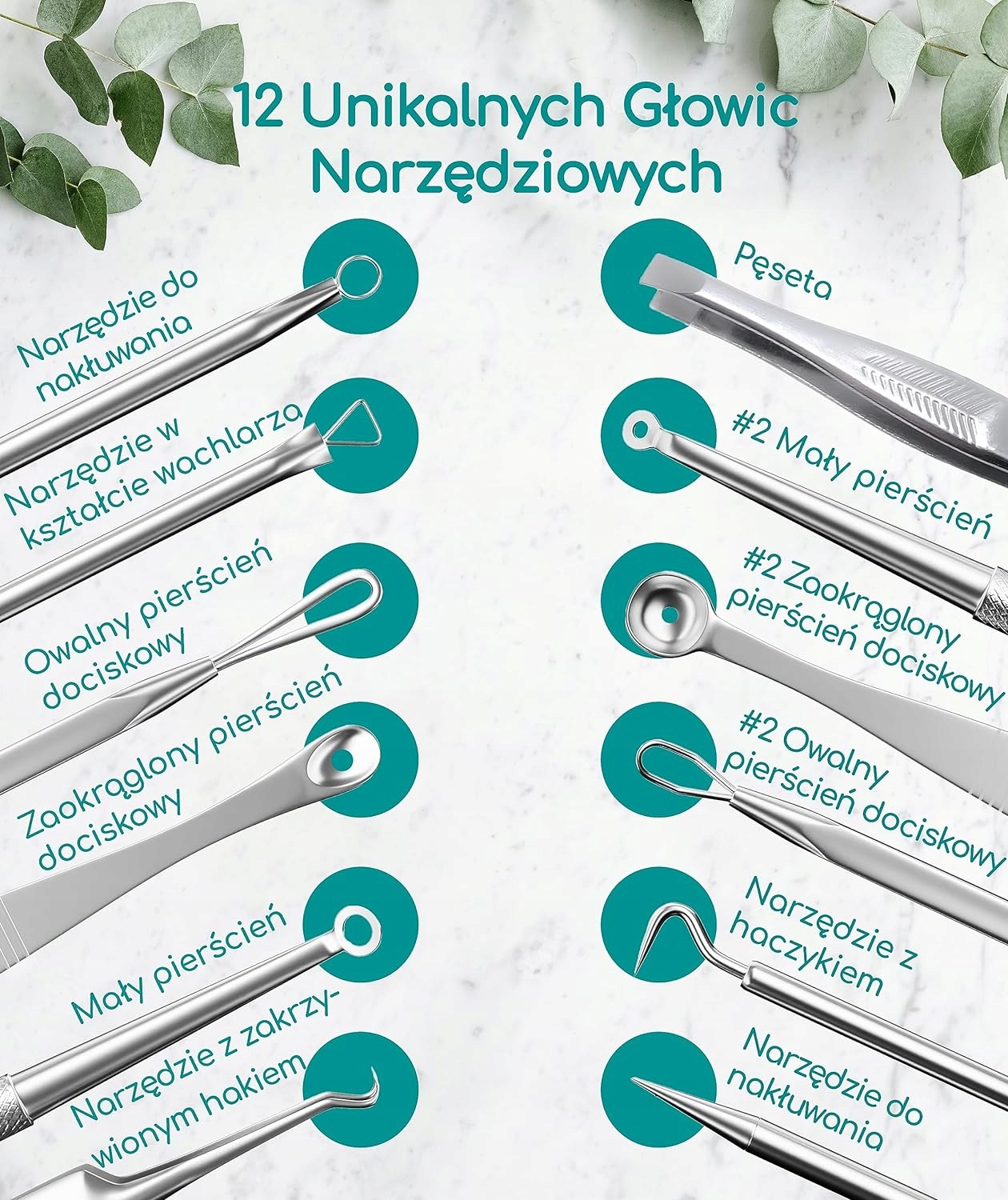 ✅ Наши инструменты для удаления черных головок являются ключевыми элементами, которые дополнят вашу процедуру ухода за кожей. Специально разработано для преодоления различных типов дефектов кожи, помогает в удалении черных голов, прыщей и других нежелательных голосов, оставляя вашу кожу чистой, гладкой и здоровой. В нем вы найдете инструменты для удаления открытых и закрытых угрей, острых пинцета, иглы для прыщей и многих других. Каждый инструмент предназначен для эффективности и безопасности - используйте их с осторожностью и осторожностью. Вы найдете аппликатор с губкой, зеркальным корпусом, чистящей тканью и папиросной бумагой. Все инструменты могут храниться в прикрепленном случае из сильного материала, что делает их всегда под рукой