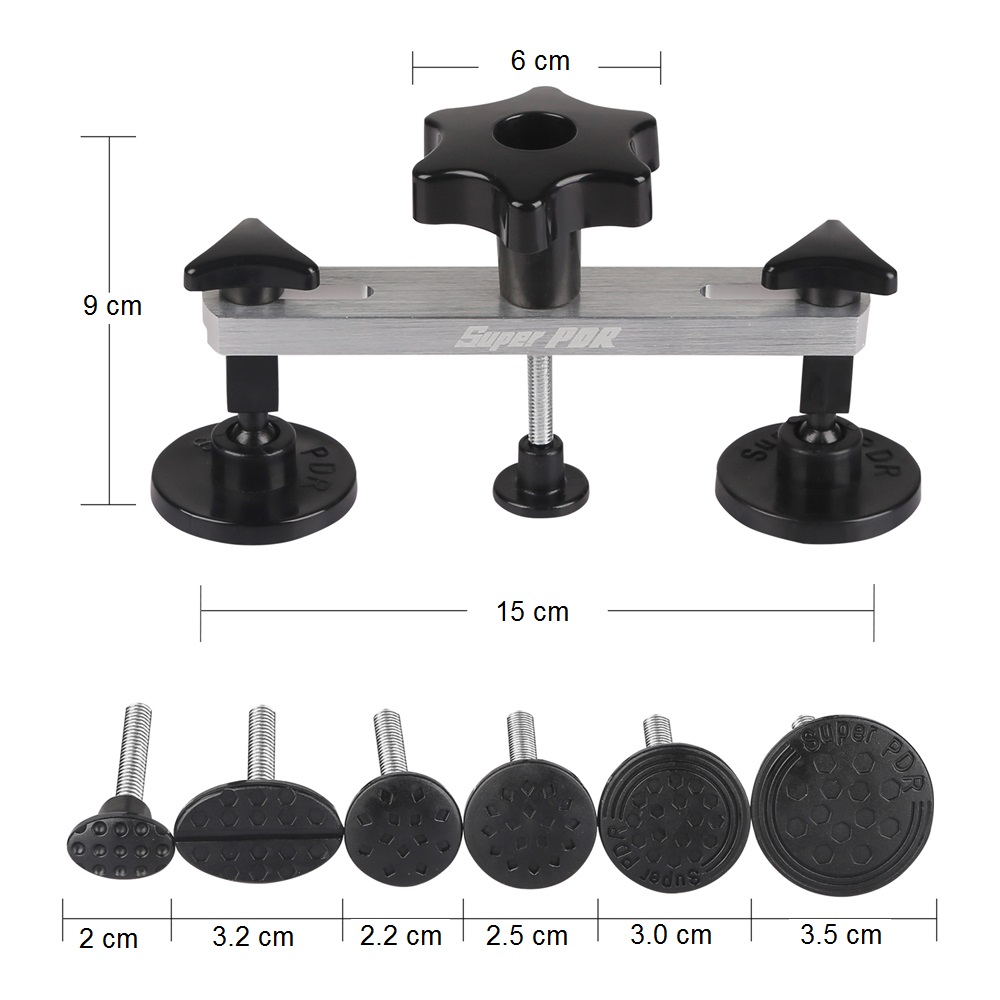 Стержень с 6 резьбовыми переходниками отличается чрезвычайно высокой тяговой силой. Он легко справится с небольшими и средними повреждениями. Регулируемое расстояние между ножками позволит адаптироваться к вмятинам от небольших до 15 см.