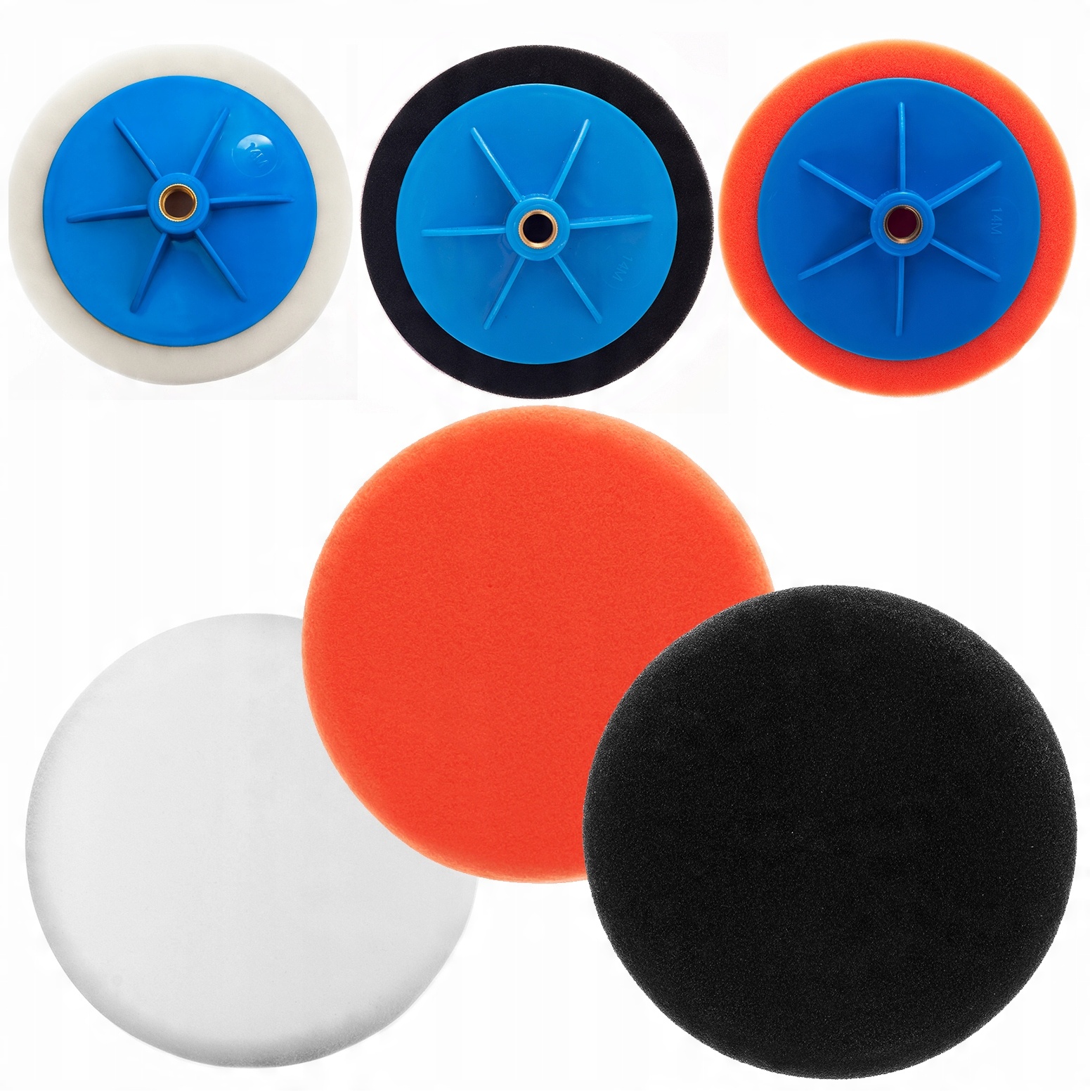 Полный набор полировальных губок с тремя уровнями жесткости, с помощью которых можно легко отполировать автомобиль в три этапа.
