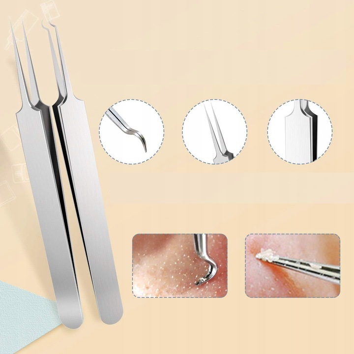 ✔️ПИНЦЕТЫ ДЛЯ ЧЕРНЫХ ГОЛОВ: Прямые и изогнутые пинцеты, расположенные по одной линии, лучше работают в труднодоступных местах, чем петли. Оба пинцета очень острые, будьте осторожны!