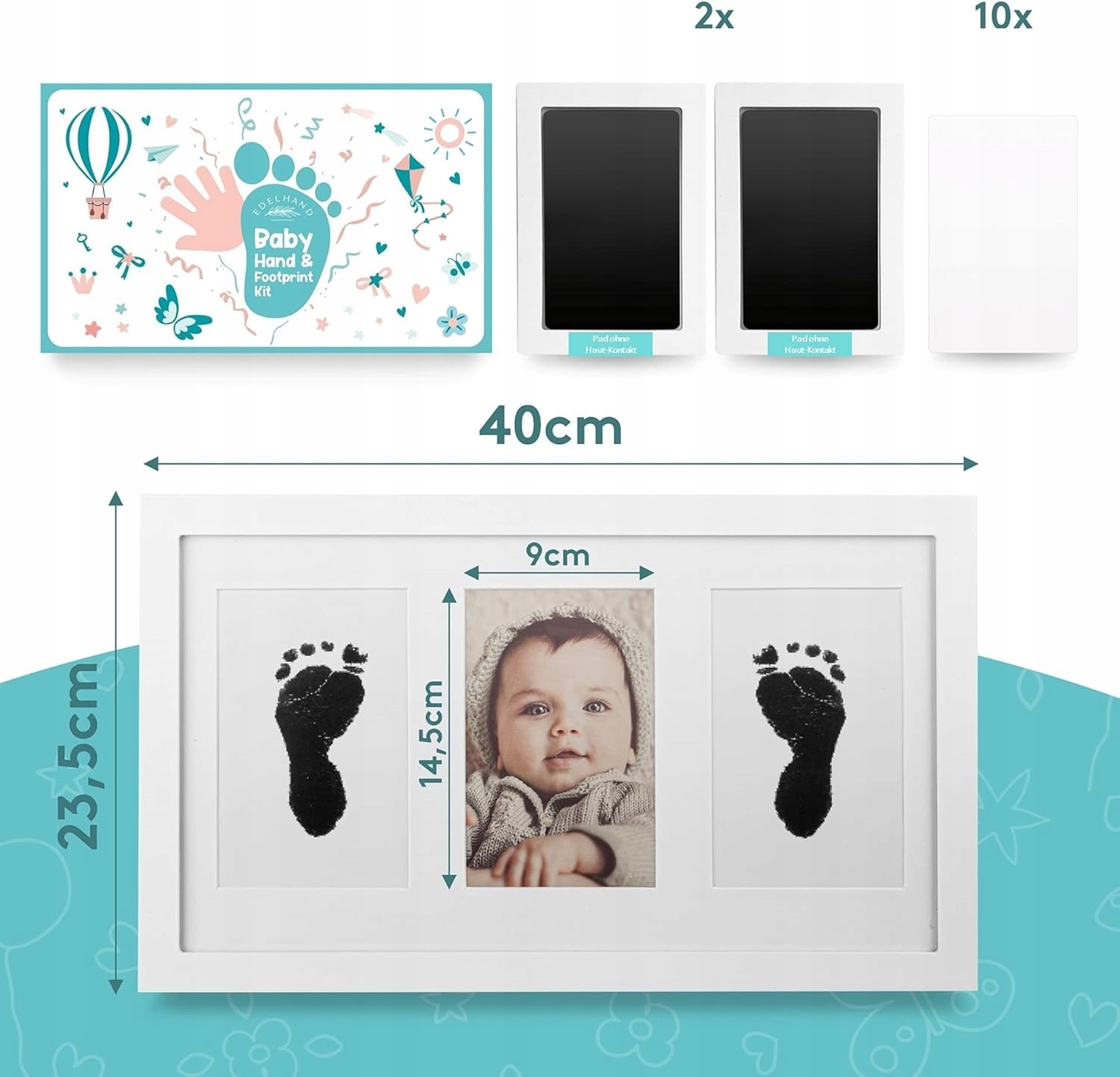 Нет темного прикосновения - благодаря специальной защитной подушке с чернилами Edelhand, кожа ребенка не имеет прямого контакта с чернилами: благодаря этому вы и ваш ребенок можете легко сделать даже самые тонкие руки и следы! Чернильные прокладки, 10 х отпечаток и красивая подарочная упаковка.