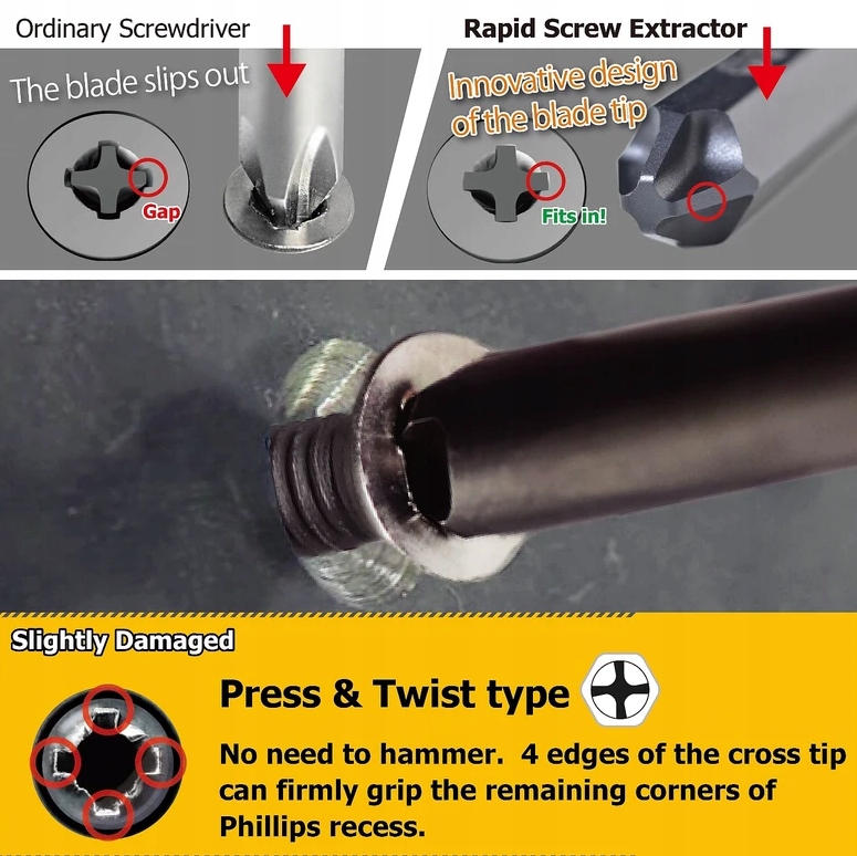 - Нажмите и поверните: обеспечивает бережное, но эффективное удаление винтов меньшего размера. Спасибо точный механизм, инструмент сводит к минимуму риск повреждения винты, что особенно важно при работе с деликатными деталями электронный.