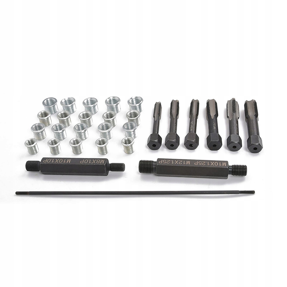 Набор метчиков и ремонтных бобинок для ремонта резьбы свечей накаливания диаметром 8, 10 и 12 мм в головках цилиндров из легких сплавов