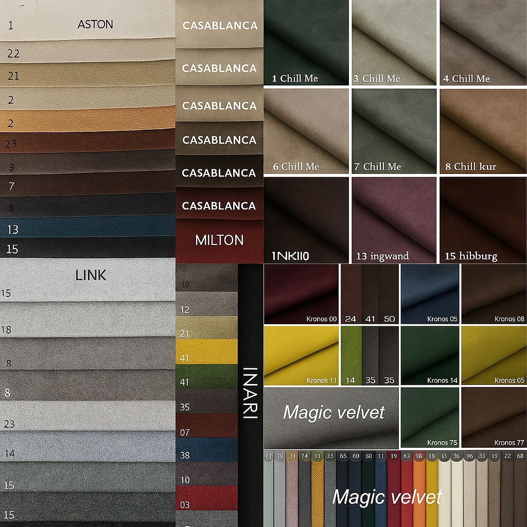 - Комплект может быть изготовлен в лицевой коже и возможен вариант комбинирования тканей.